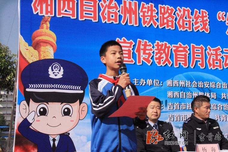 红网吉首站4月17日讯(记者 于茁)4月17日,湘西自治州铁路沿线“知路·爱路·护路”宣传教育月活动启动仪式在乾元小学举行,进一步弘扬知路爱路护路的社会风尚,最大限度的减少铁路交通事故和危及行车安全案(事)件的发生。