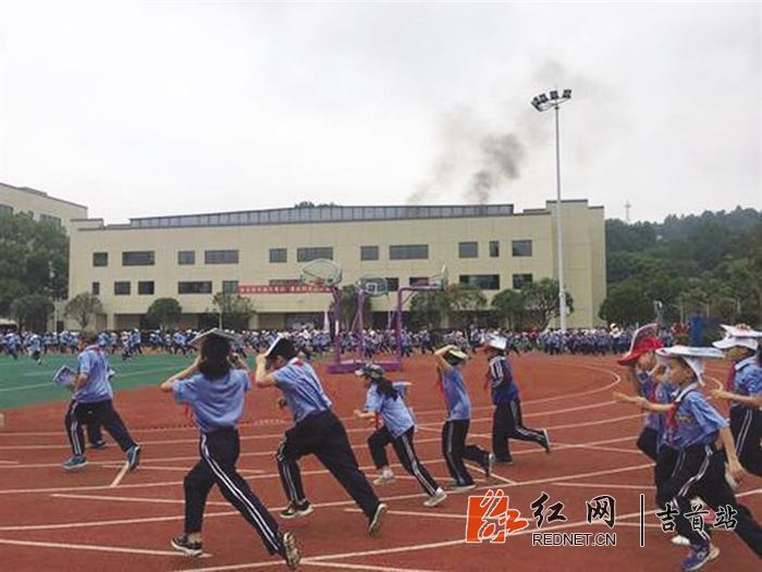 红网吉首站5月14日讯(通讯员 麻垣杰)5月11日,14时59分,随着一声警报鸣响,吉首乾元小学2000多名师生迅速疏散到避难场所。这是由省地震局,州、市人民政府主办,州、市应急办等多个相关部门联合举办的2018年防灾减灾日应急知识宣传活动启动仪式暨防震减灾综合应急演练活动。