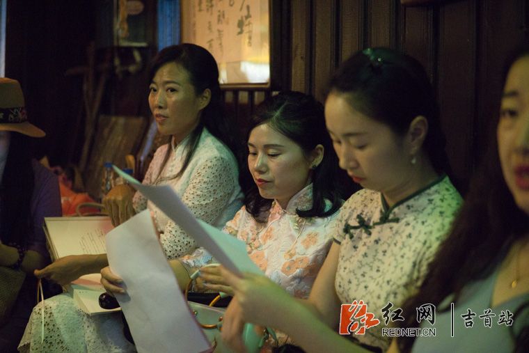 准备上台朗诵的诗友们正在后台准备