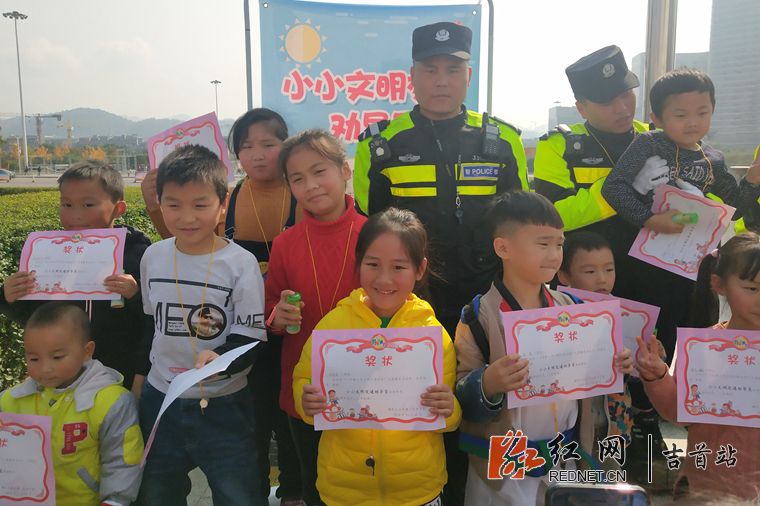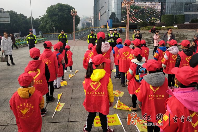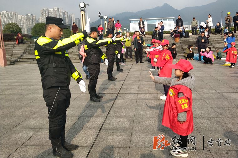 红网吉首站11月27日讯(通讯员 陈玫 田梅)11月25日,由共青团湘西州委、州文明办、州美丽办、吉首团市委、市文明办、市综治办、市公安局交通管理大队、湘西生活网联合主办的环保系列活动“我是小小文明劝导员”在世纪广场举行,30组家的庭孩子们纷纷戴上小红帽,穿上志愿者服装,佩戴志愿者红袖套,手举小黄旗,争当文明小先锋。