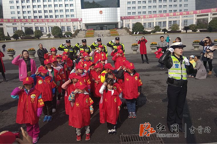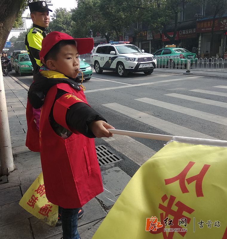 最后,小小志愿者们和交警一同来到吉首市人民政府前坪,面向着国旗宣誓,“文明吉首,文明出行。我们一定学好交通安全知识,自觉遵守交通法规,并用我们的小手拉起爸爸、妈妈、叔叔、阿姨的大手,文明交通一起走。”