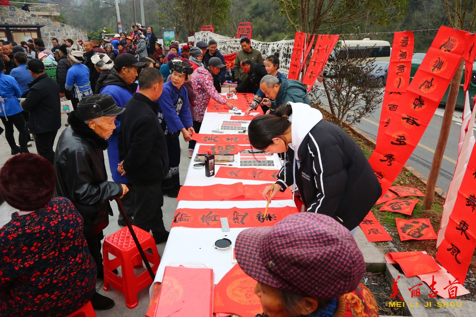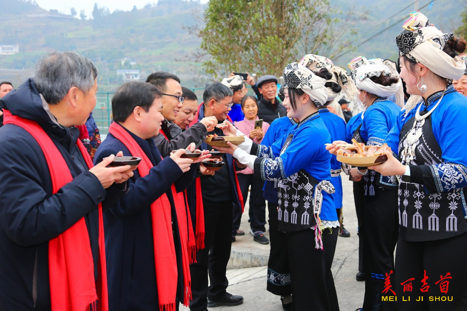 活动伊始,身着民族服饰的村民设拦门酒,以苗歌、米酒、暖心围巾迎宾,暖意融融。
