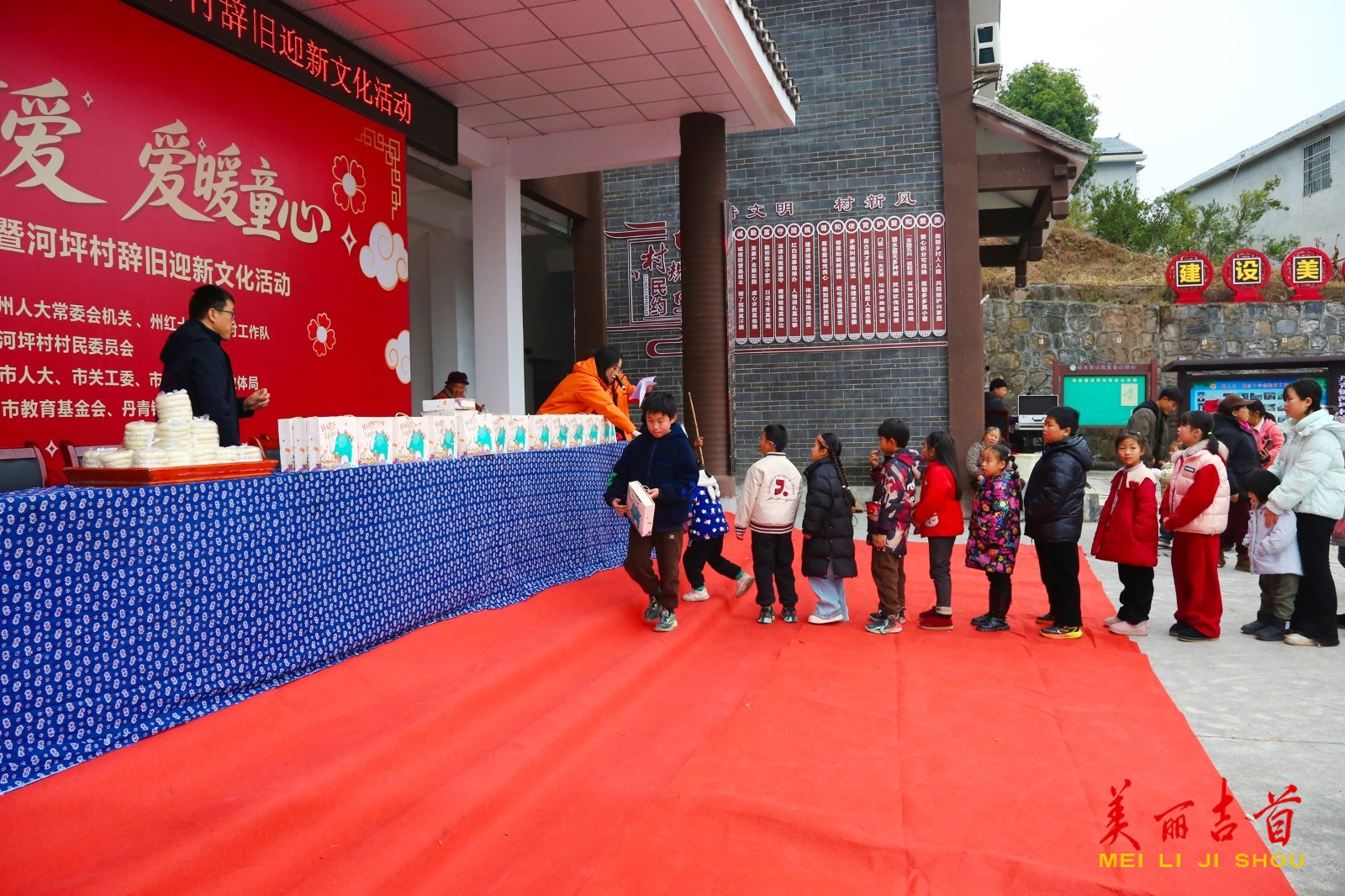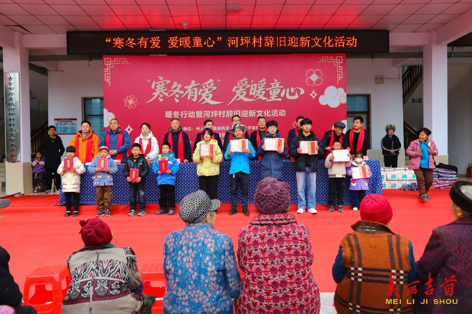 吉首市融媒体中心2月10日讯(通讯员 石雪源 杨燕萍)2月4日,吉首市“寒冬有爱·爱暖童心”暖冬行动暨河坪村辞旧迎新文化活动在丹青镇河坪村村部举办。州人大、市人大、市关工委、市教育基金会等单位相关负责人与村民欢聚一堂,以表彰慰问、民俗展演、团圆家宴等形式,共迎新春、共话乡村振兴。