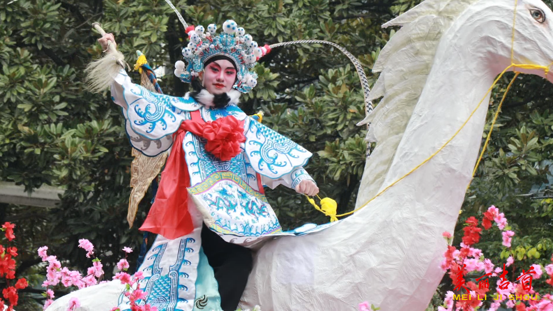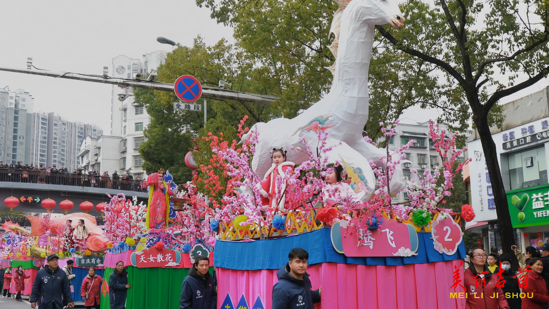 已有400多年历史的“乾州春会”,其“游春”最令人期待。高达数米的春台固定在车架上,由儿童装扮成历史人物悬于高竿,衣袂飘飘。今年的12台春造型紧扣马年主题:象征勤劳的“春牛”领头,气势昂扬的“腾飞”迎合马年生肖,喜庆祥瑞的“天女散花”,寓意年年有余的“吉庆有鱼”……一台春就是一座流动戏台,每一个造型都承载着美好祝福。