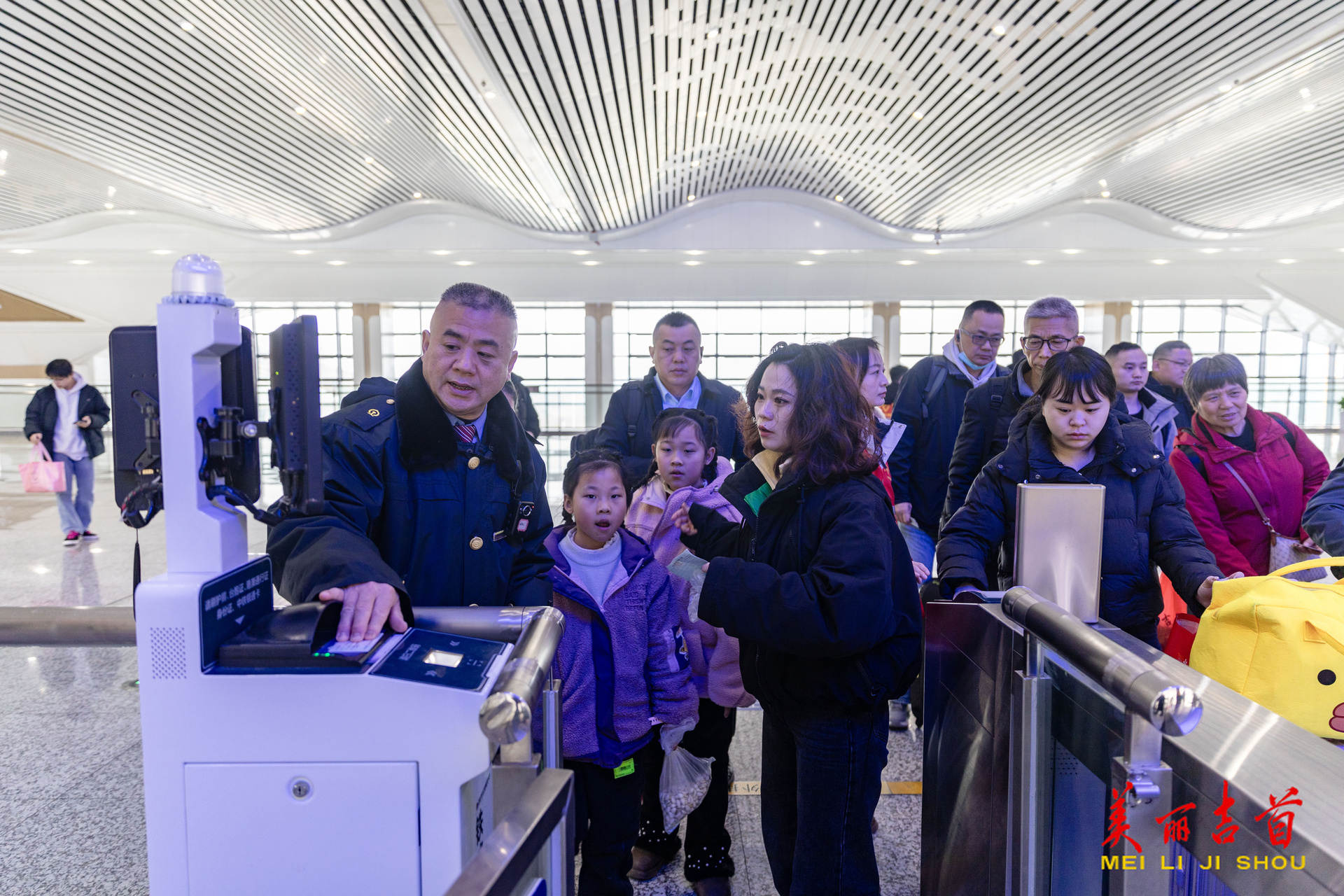 △2026年2月2日,张吉怀高铁吉首东站工作人员帮助旅客通过安检闸机。