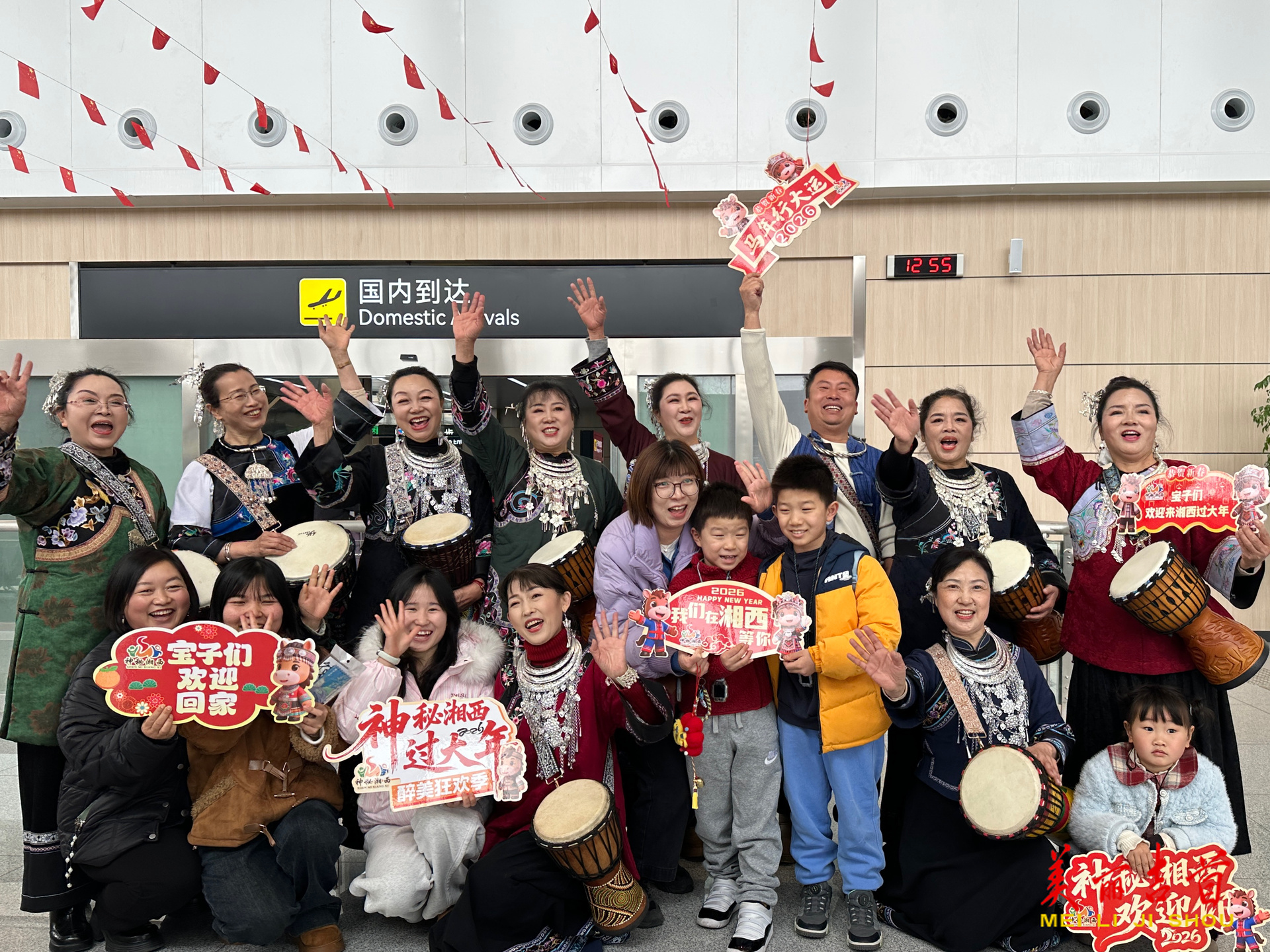 春运首日,机场还联合湘西州文旅广电局推出“湘西等你”快闪活动,以“航空 + 文旅”的形式,让旅客感受湘西地域文化与城市热情。北京旅客樊友元说:“我感觉很热情,又回到了老家,很有过年的气氛,既感动又开心。”