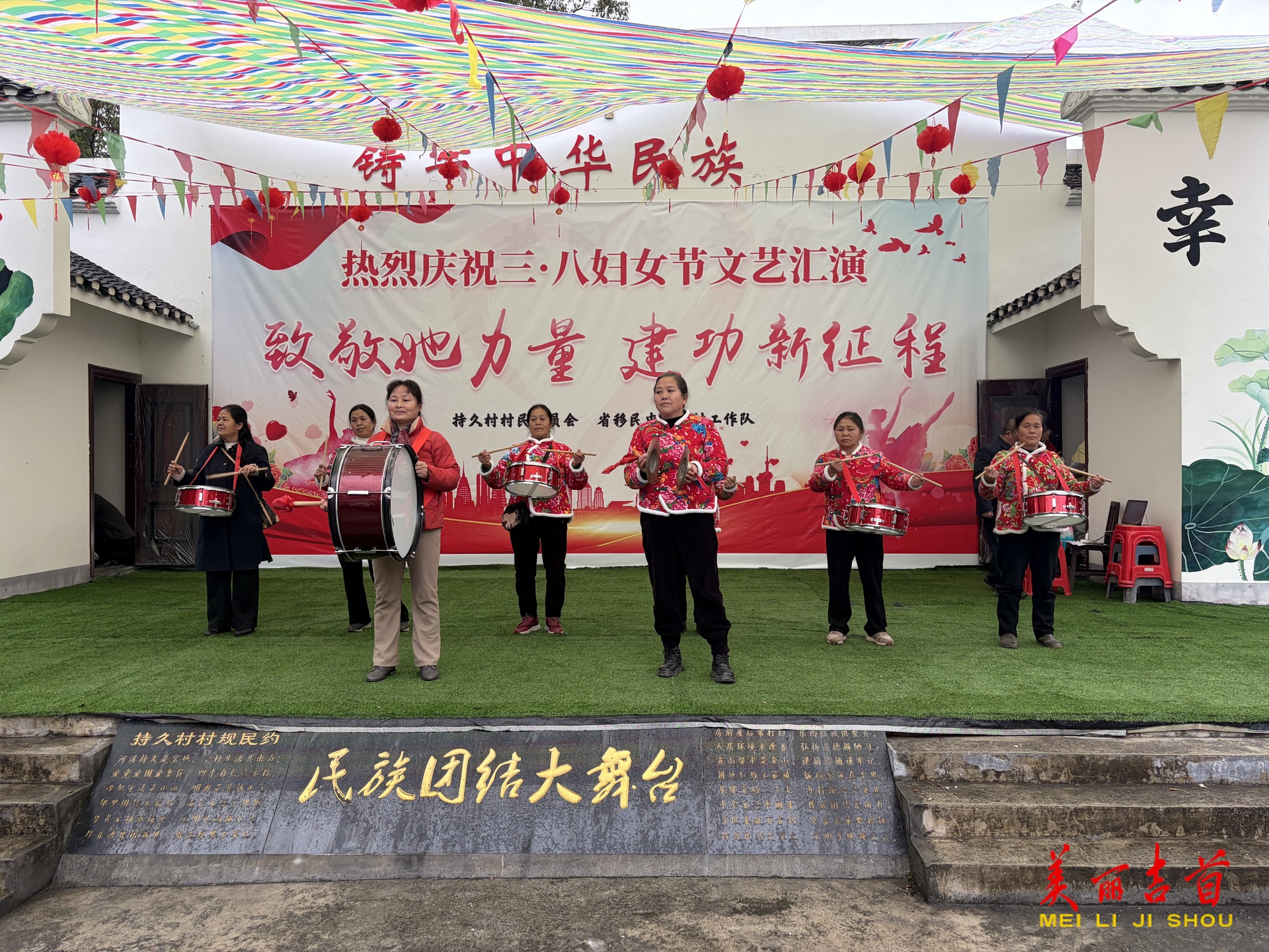 河溪镇持久村的活动现场热闹非凡,村民们自发编排的集体舞蹈活力四射,鲜艳的服饰在舞台上格外亮眼,激昂的鼓乐表演节奏铿锵,瞬间点燃全场氛围。拔河比赛更是将气氛推向高潮,参赛队员们紧握长绳、齐心协力,大家都沉浸在欢乐的氛围之中。