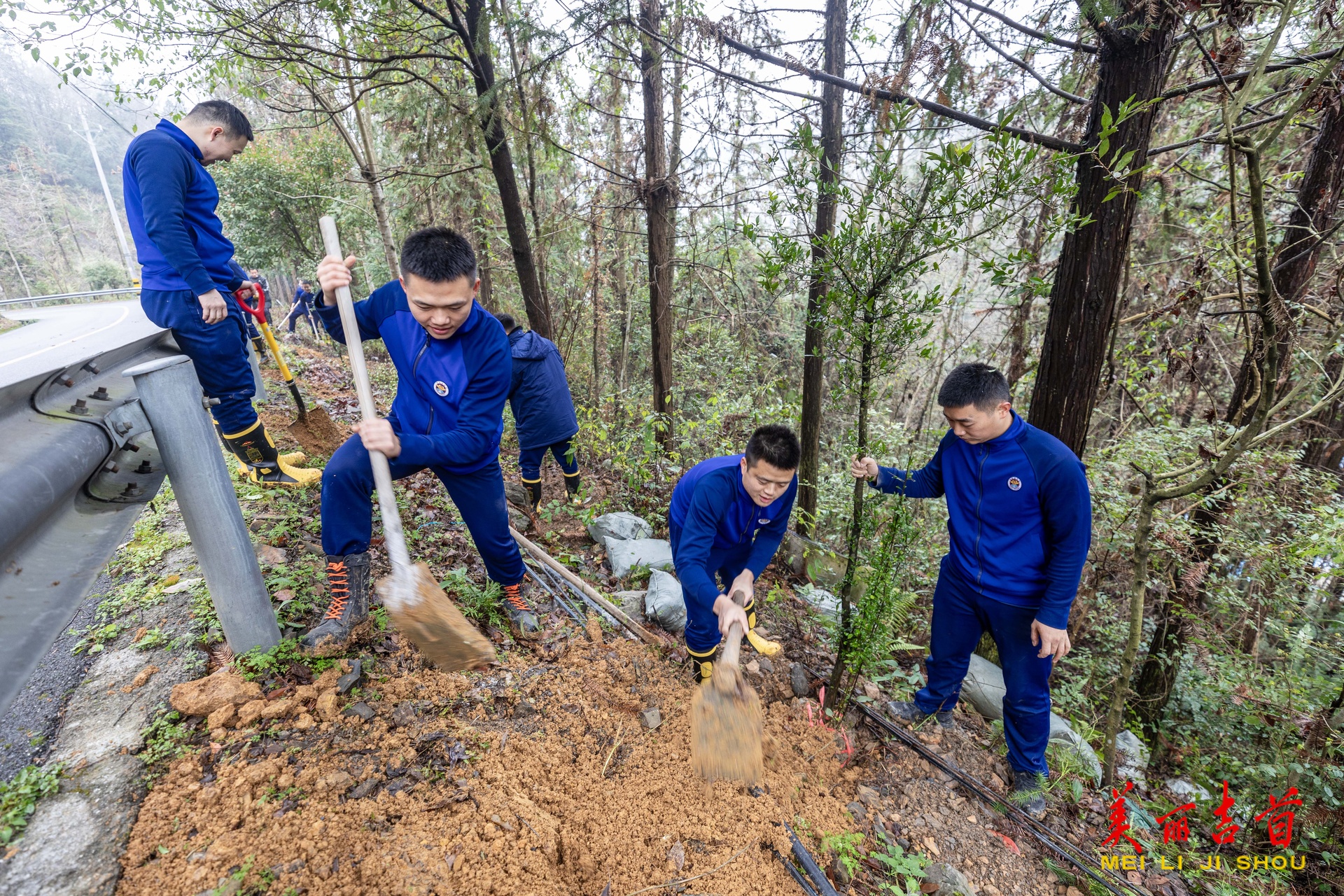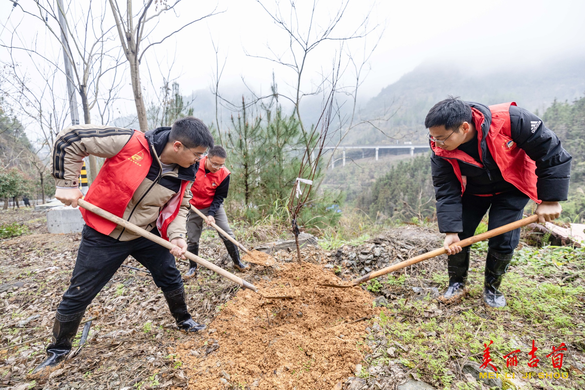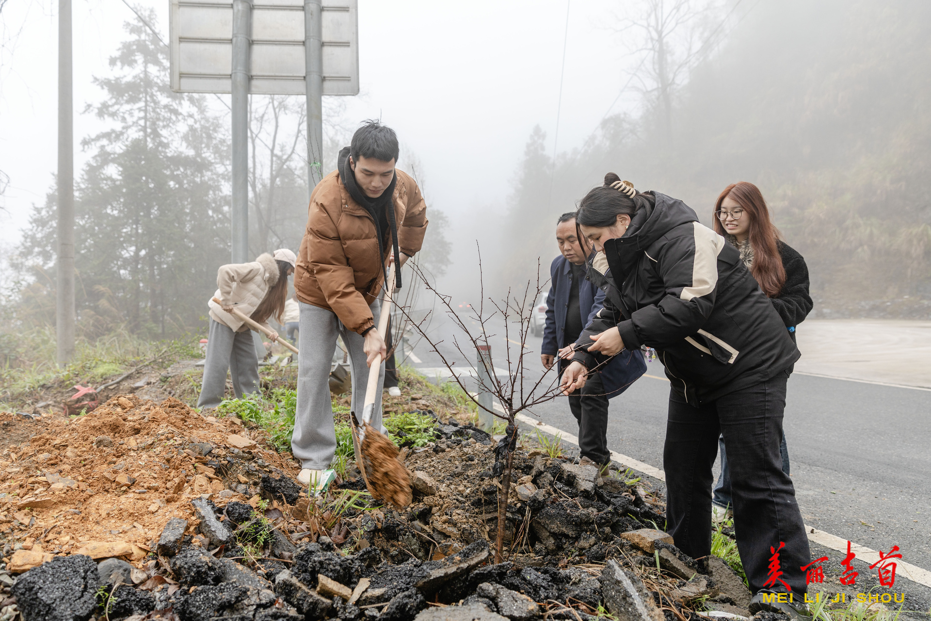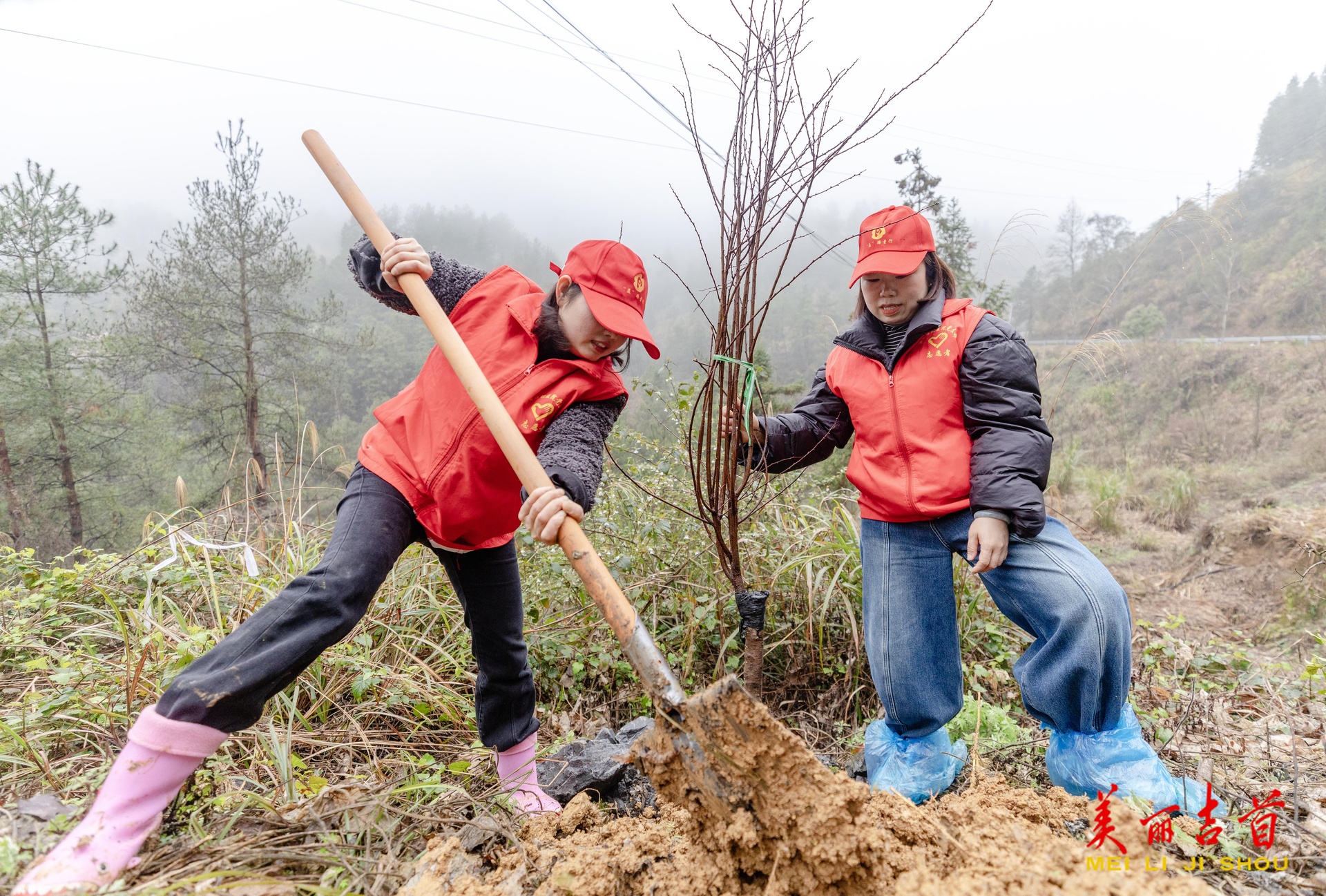 吉首市融媒体中心3月11日讯(全媒体记者 彭璟)3月10日,在吉首市石家冲街道栗溪村,志愿者在公路沿线栽种树苗。植树节临近,该街道组织林业、消防、金融等州、市单位职工及大学生志愿者开展春季义务植树活动,为道路增添新绿,以实际行动助力乡村生态建设。