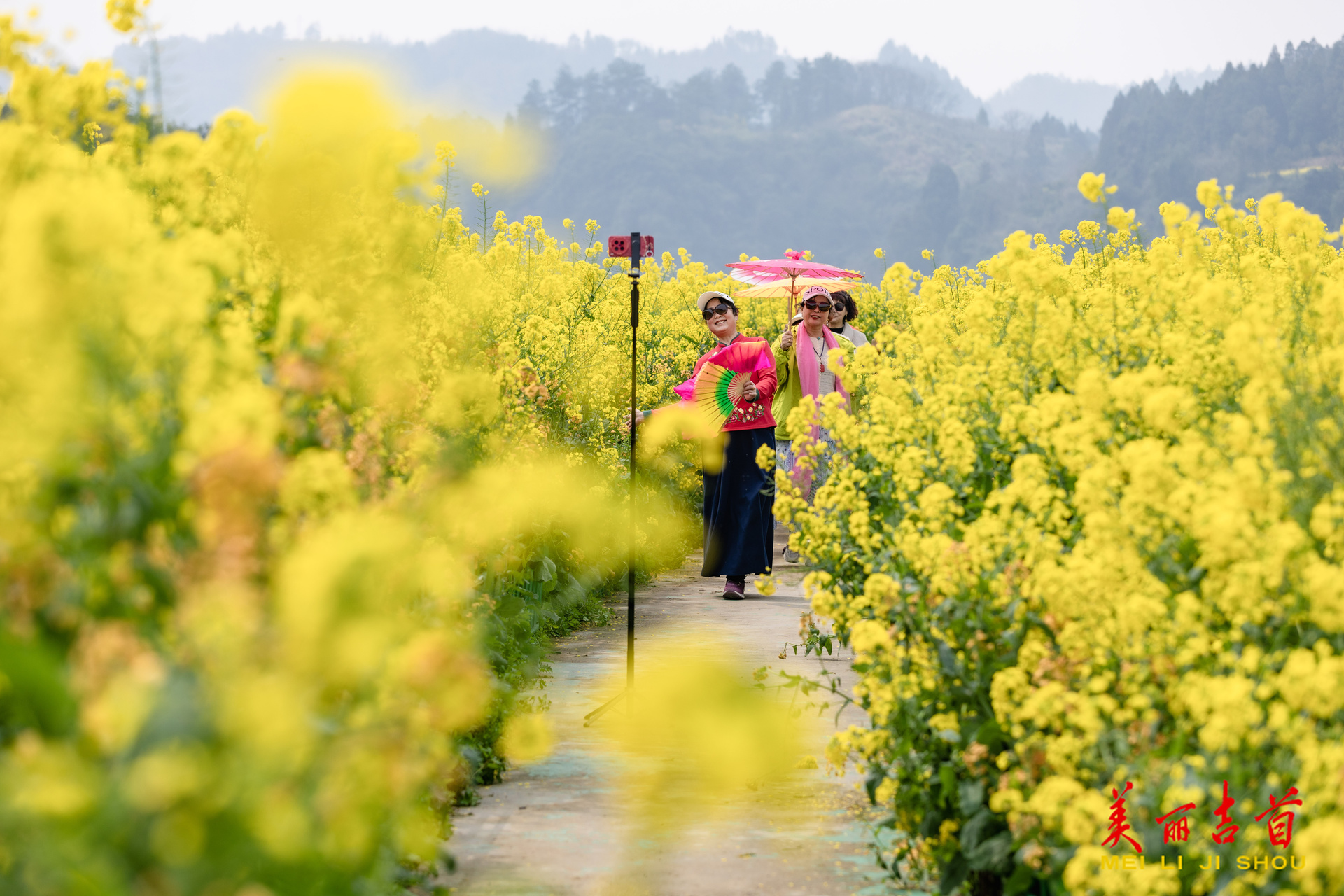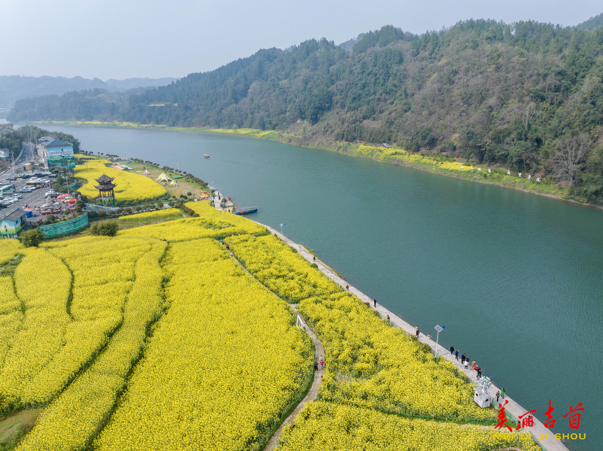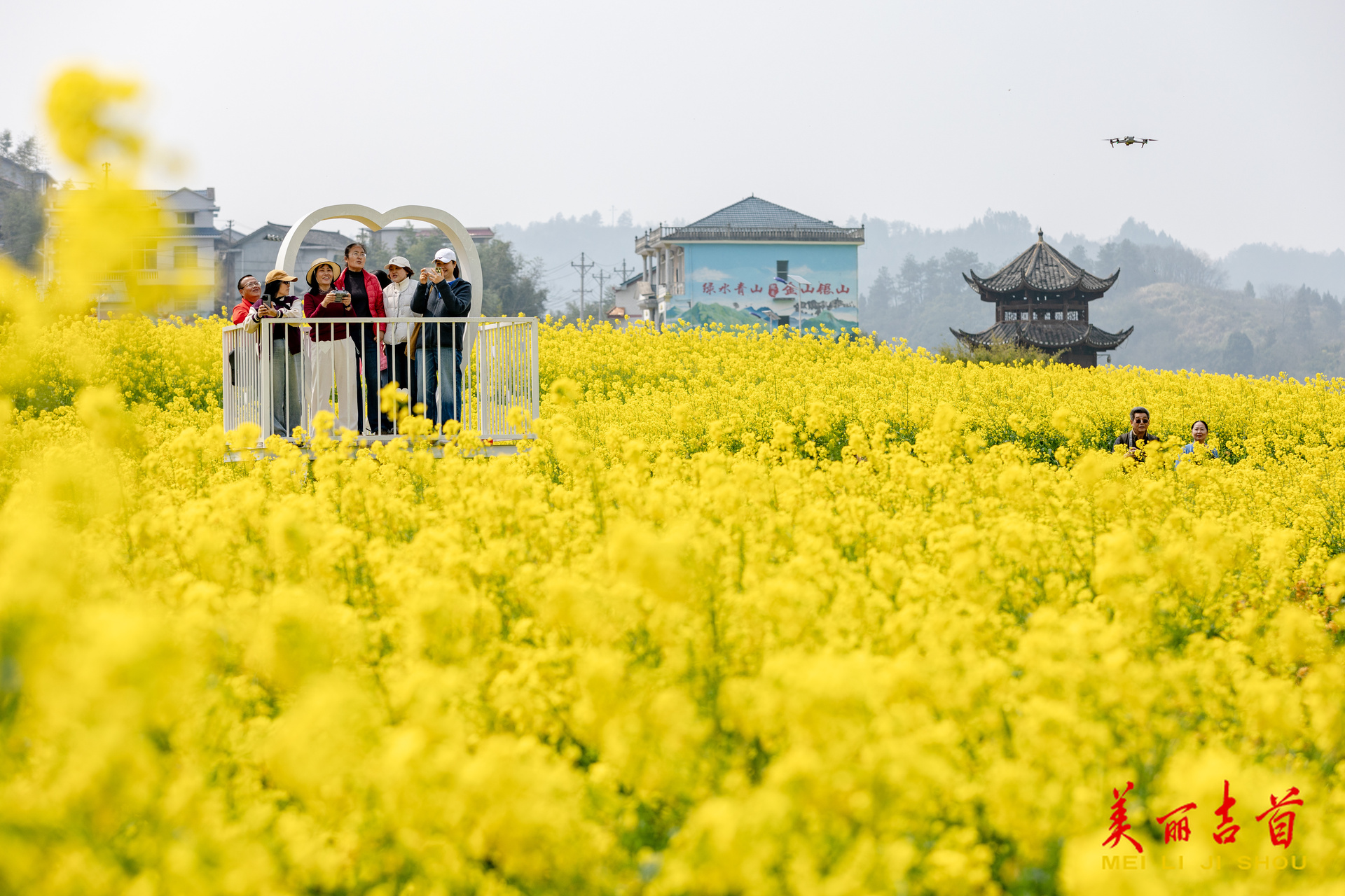 吉首市融媒体中心3月13日讯(全媒体记者 彭璟)3月12日,泸溪县潭溪镇大陂流村,游客在油菜花海中打卡拍照。近年来,大陂流村依托山水田园风光,大力发展农旅融合产业,精心打造“山水大陂流”乡村旅游品牌,有效带动了当地经济发展,助力乡村振兴。时下,该村百亩油菜花迎来盛放期,金色的花海与错落的村庄、蜿蜒的河流交相辉映,构成一幅诗意盎然的春日画卷,吸引众多游客前来踏青赏花、休闲游玩。