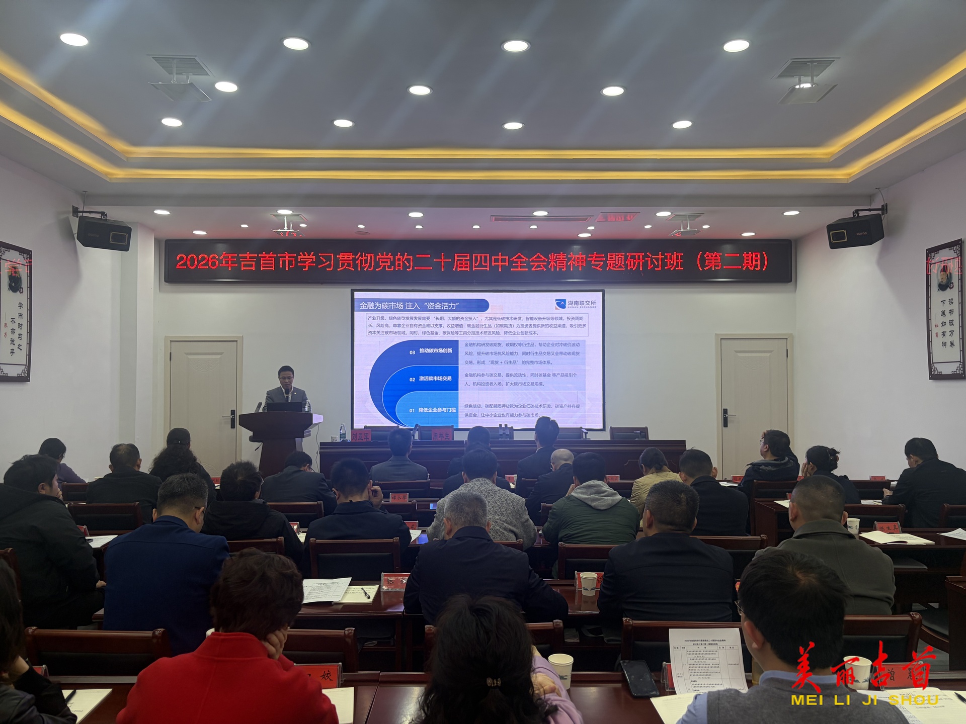 吉首市融媒体中心3月26日讯(全媒体记者 田鹏)3月25日,2026年吉首市学习贯彻党的二十届四中全会精神专题研讨班(第二期)在市委党校开班。市领导张俊、符启银、向洪琼等参加学习。