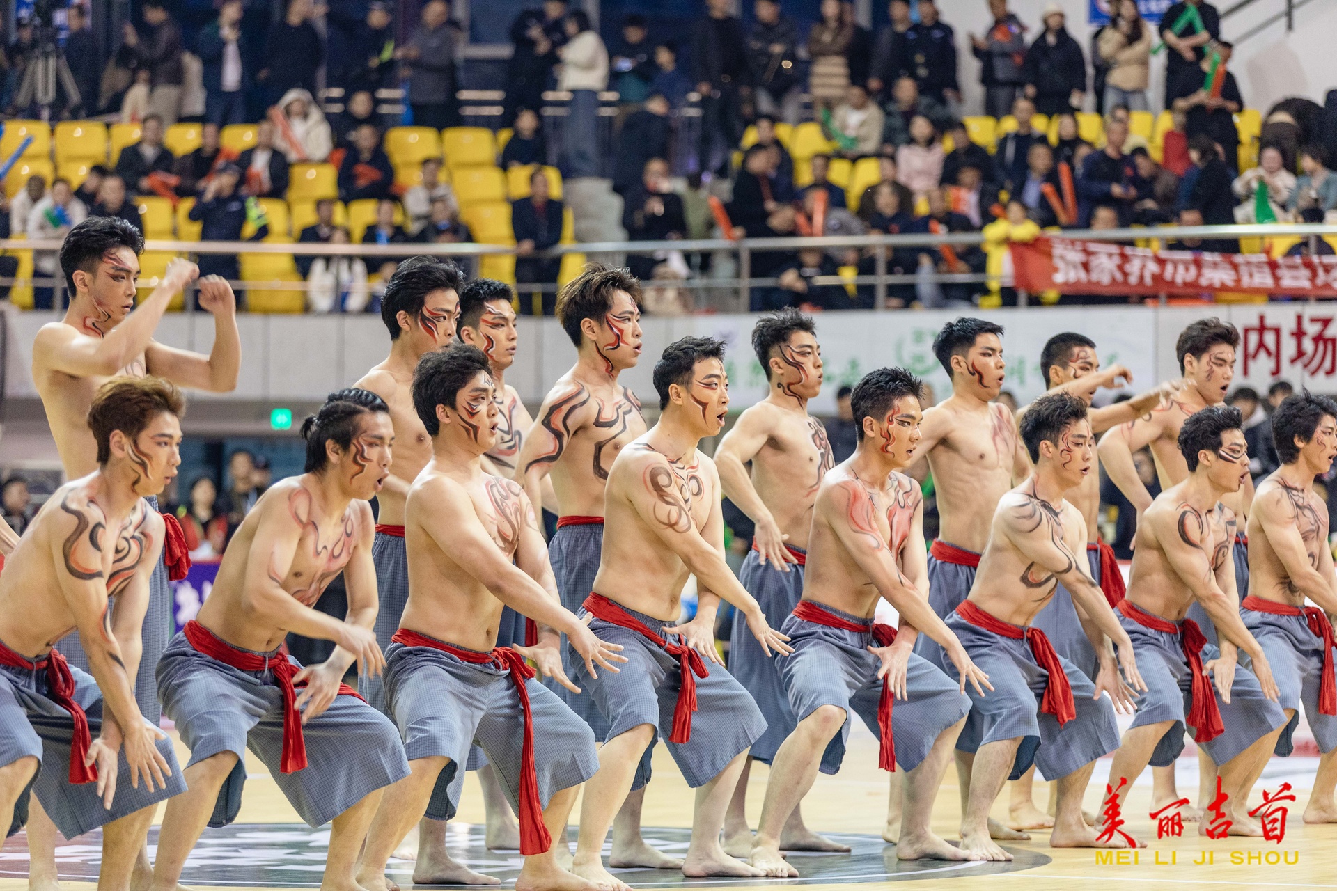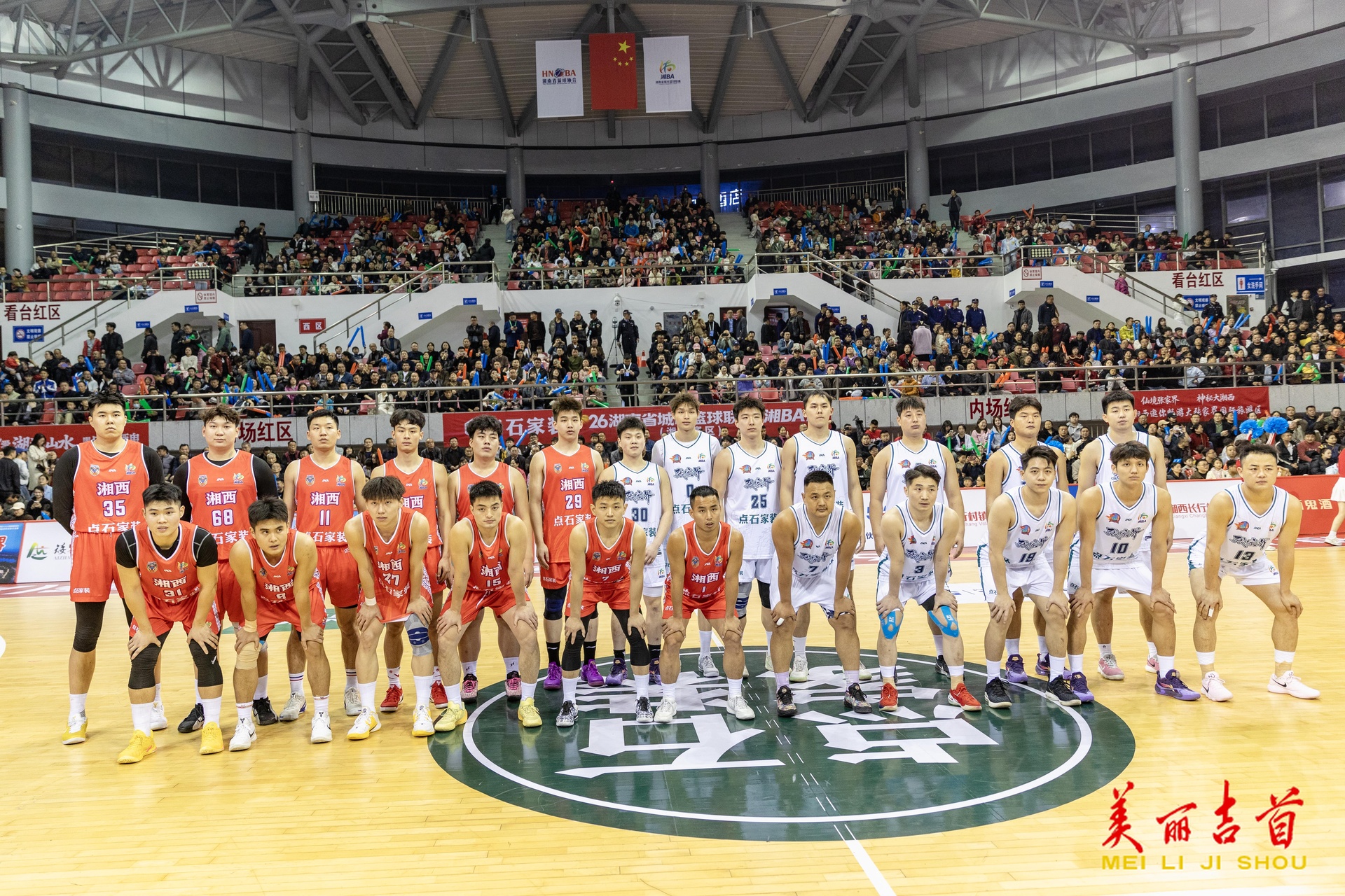 湘西队球员(红)与张家界队球员(白)在比赛前合影。