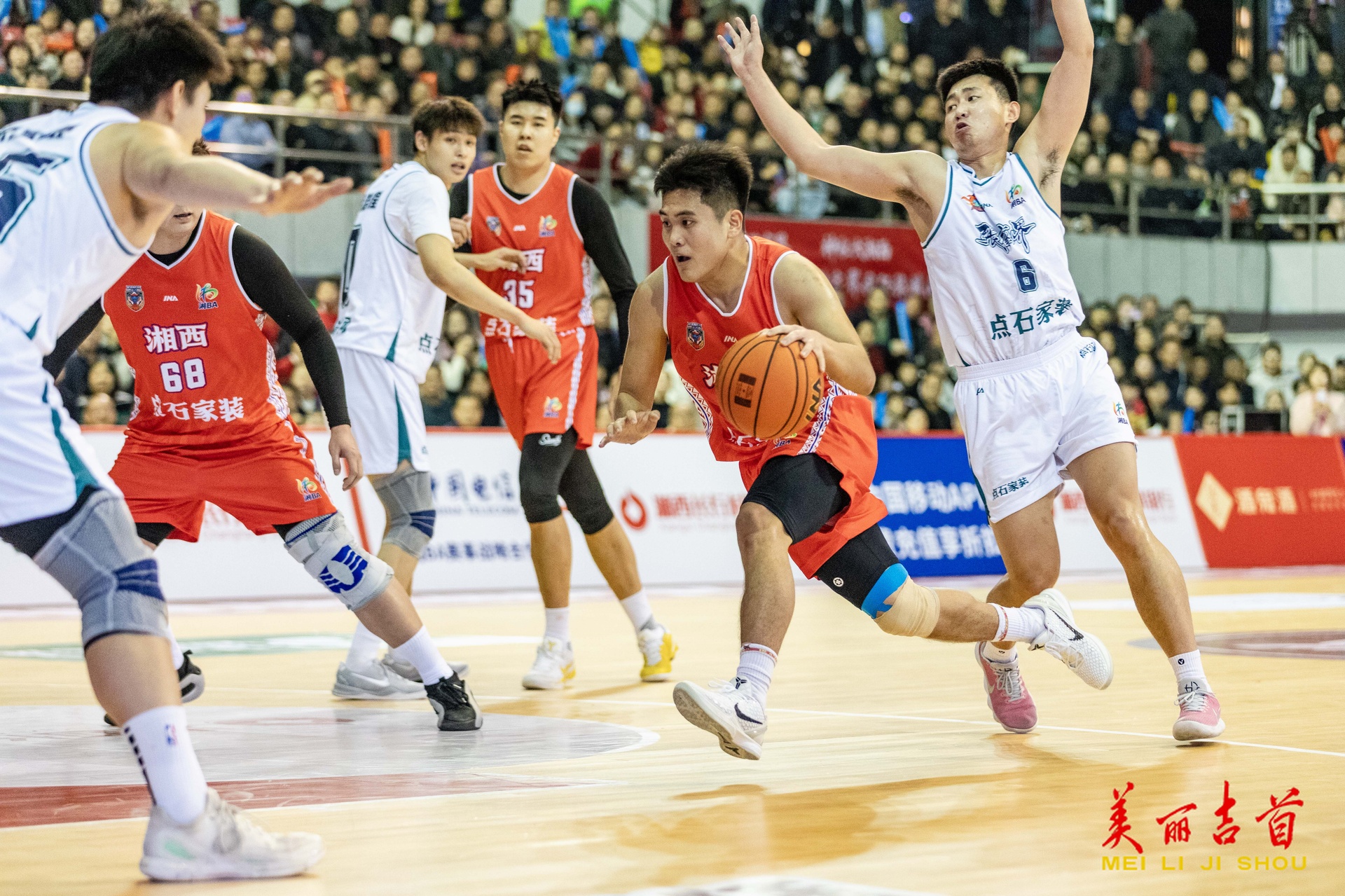 湘西队球员(红)与张家界队球员(白)在激烈比赛。