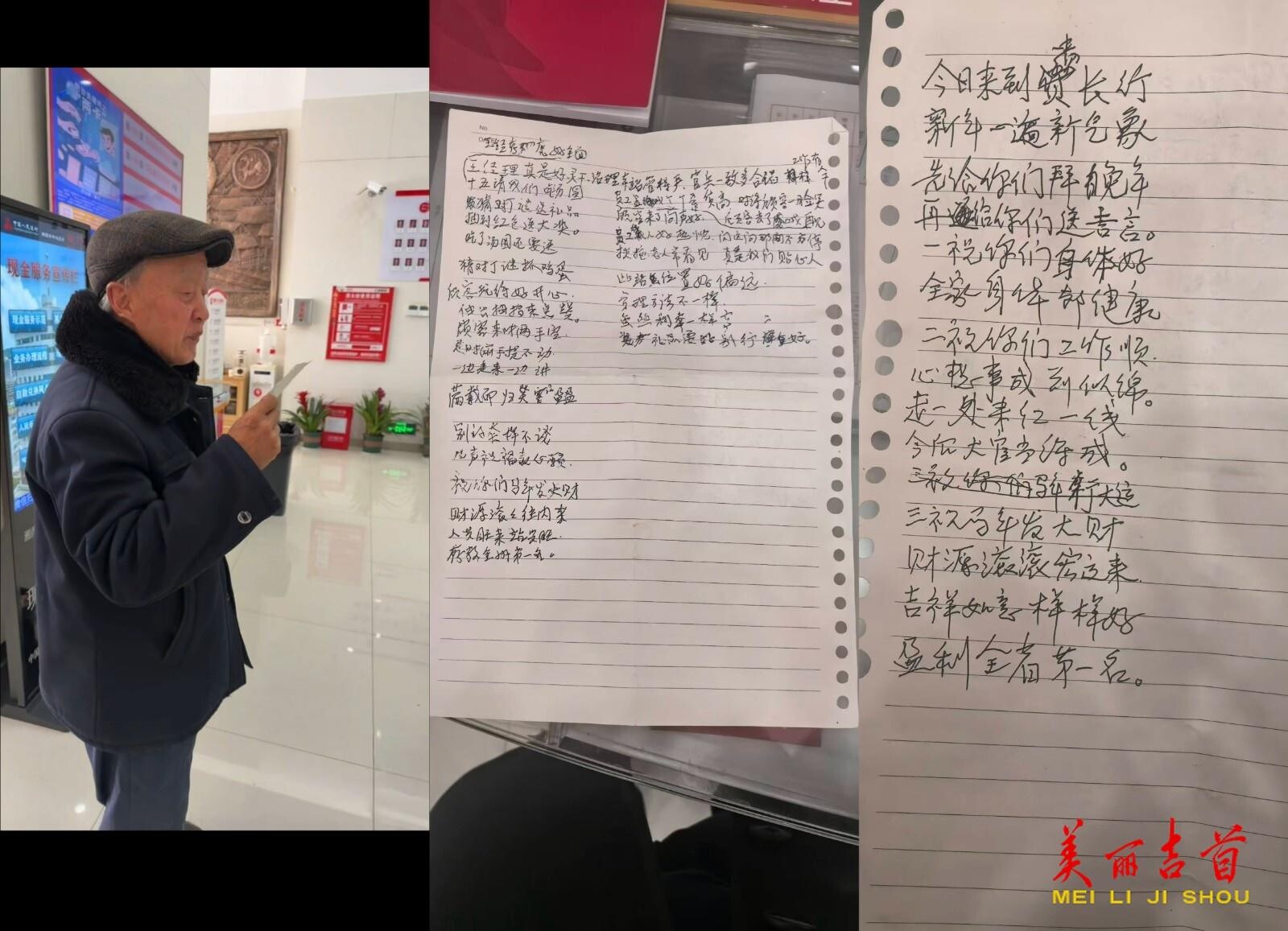 活动中,一位老客户深受感染,即兴作诗两首,点赞银行服务,令现场员工备受鼓舞。