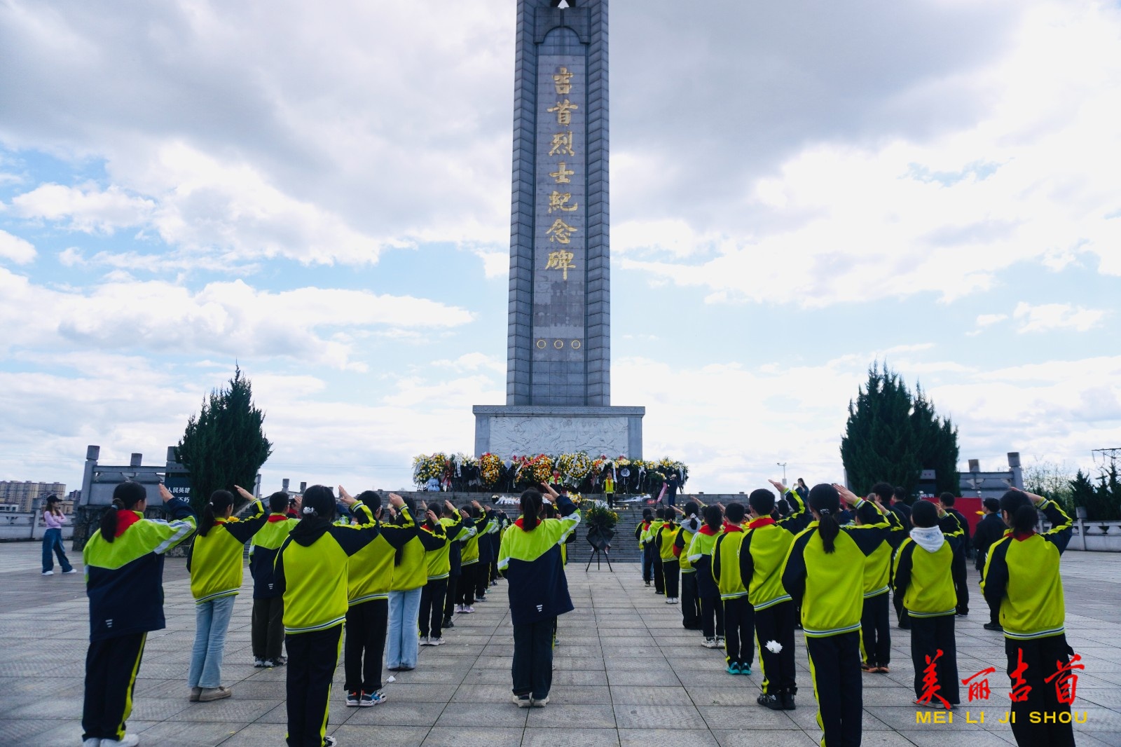 在吉首烈士纪念碑前,少先队员列队默哀、敬献花篮。步入纪念馆,烽火岁月中的实物与图片让大家深受触动。