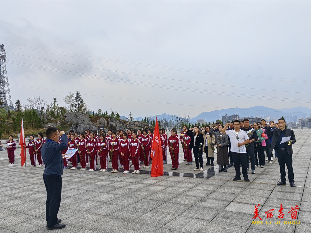 活动以“党建带团建”的形式,由校党总支和共青团组织开展。在革命烈士纪念碑前举行简单而庄严的祭奠仪式。学校负责人带领全体党员重温入党誓词,全体师生依次环绕瞻仰烈士纪念碑并敬献鲜花。最后,全体师生默哀,表达对先烈的无尽哀思与崇敬。