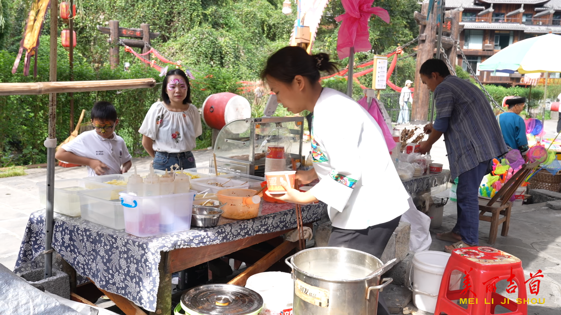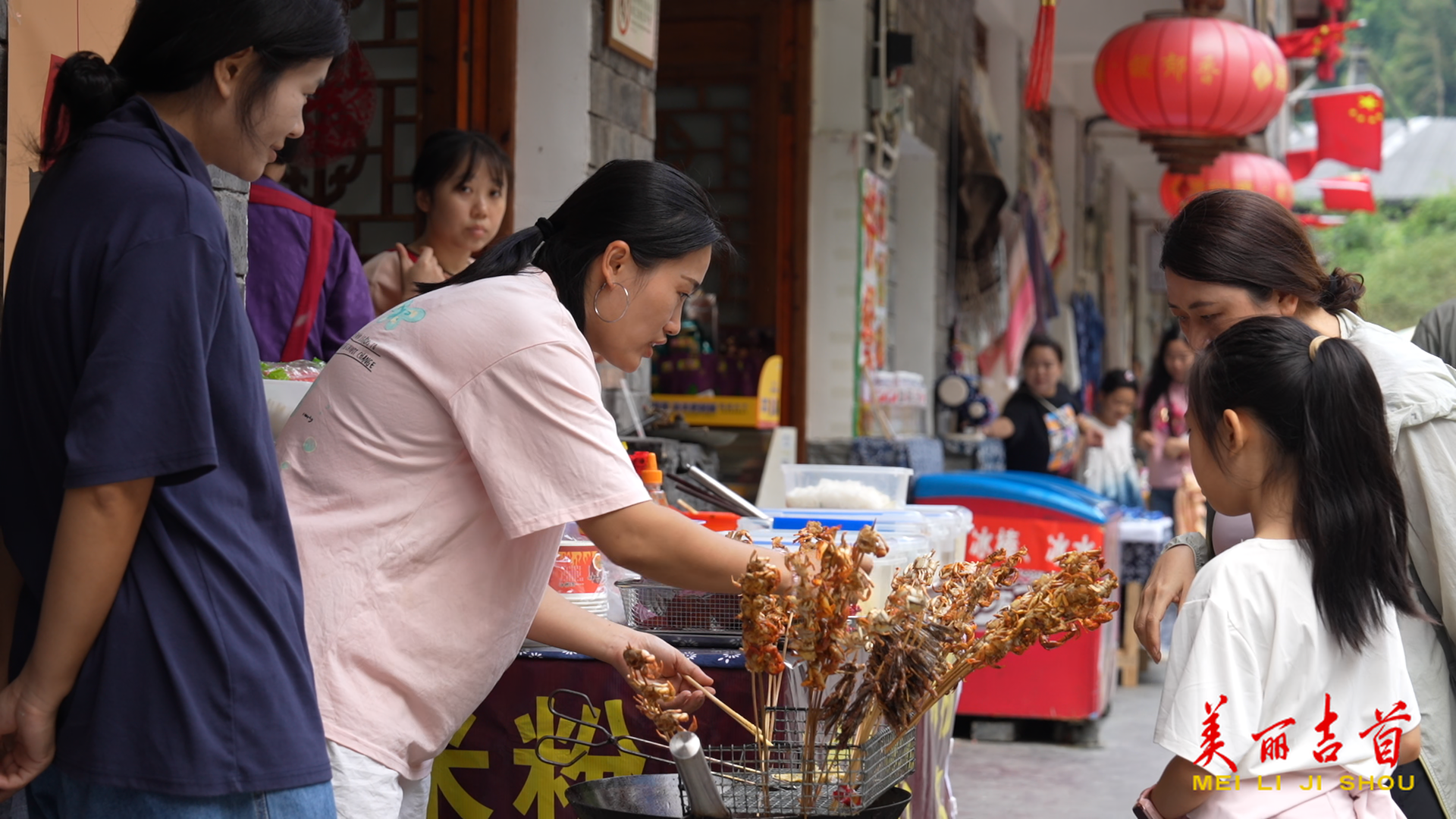 除了鼓舞表演,地道的湘西美食也让游客流连忘返。景区里,香气四溢的螃蟹、酸辣开胃的米豆腐、金黄酥脆的油炸粑粑和苗家特色的蒿菜粑等摊位前都排起长队,让游客的味蕾在旅途中尽享极致体验。