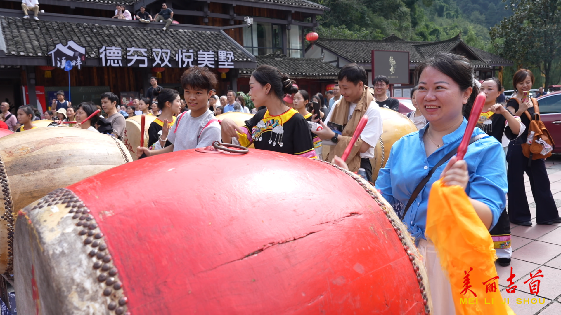 10月4日当天,活动现场百面苗鼓整齐排列,气势恢宏。随着鼓声齐鸣,“点睛醒鼓”“乾坤鼓演”“百鼓齐鸣”等环节依次展开。鼓手们动作整齐划一,鼓声如雷,响彻山谷,将现场氛围推向高潮,也传递出苗族同胞对国泰民安、五谷丰登的美好祝愿。在“鼓舞同心”互动环节,游客们踊跃参与,拿起鼓棒、站到鼓边,认真模仿学习,同伴则纷纷举起手机,记录精彩瞬间。