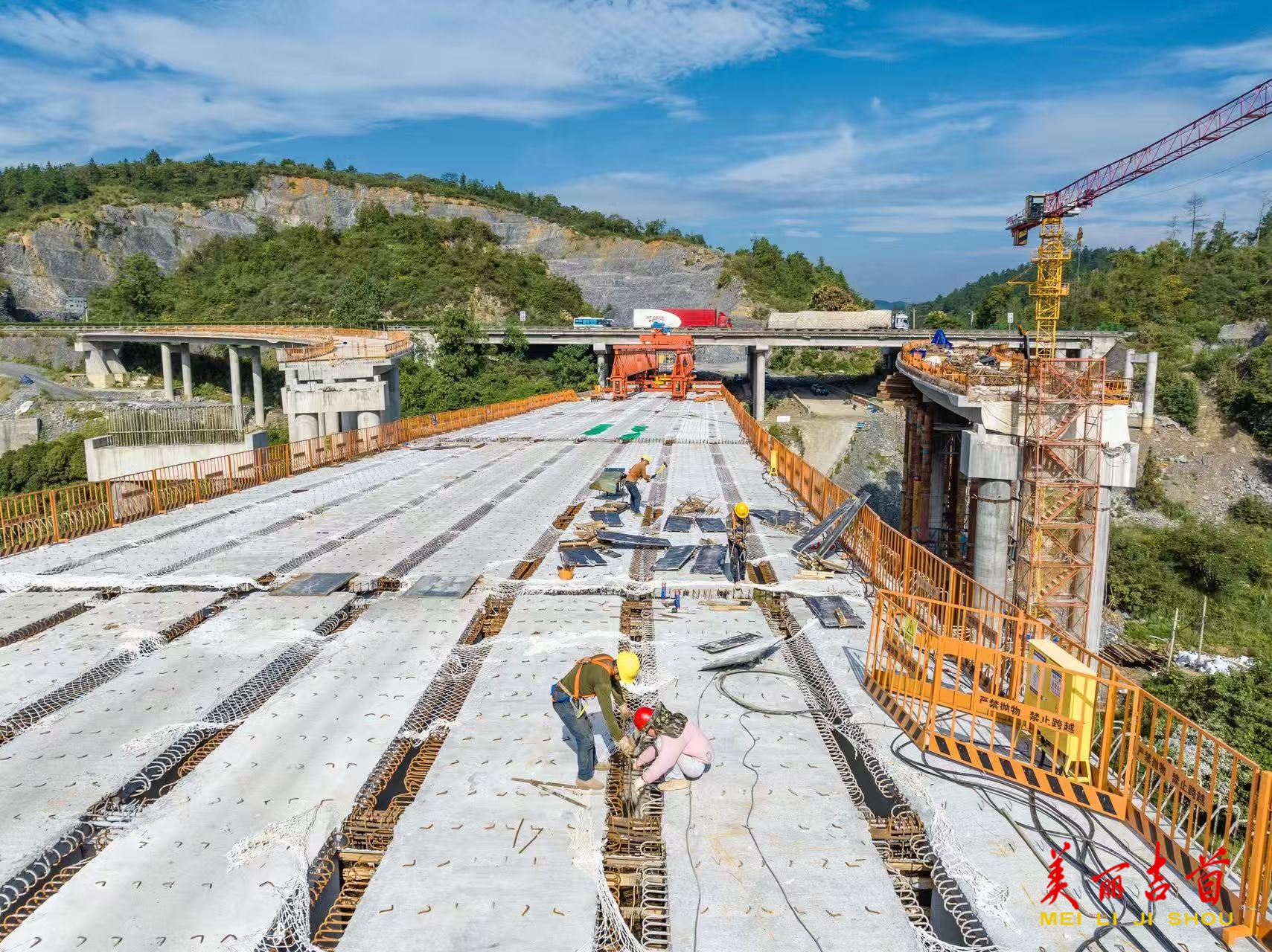 吉首市融媒体中心10月4日讯(全媒体记者 彭 璟)2025年10月2日,吉首市吉怀高速金坪(联合)互通项目工地,建设者在施工作业。
