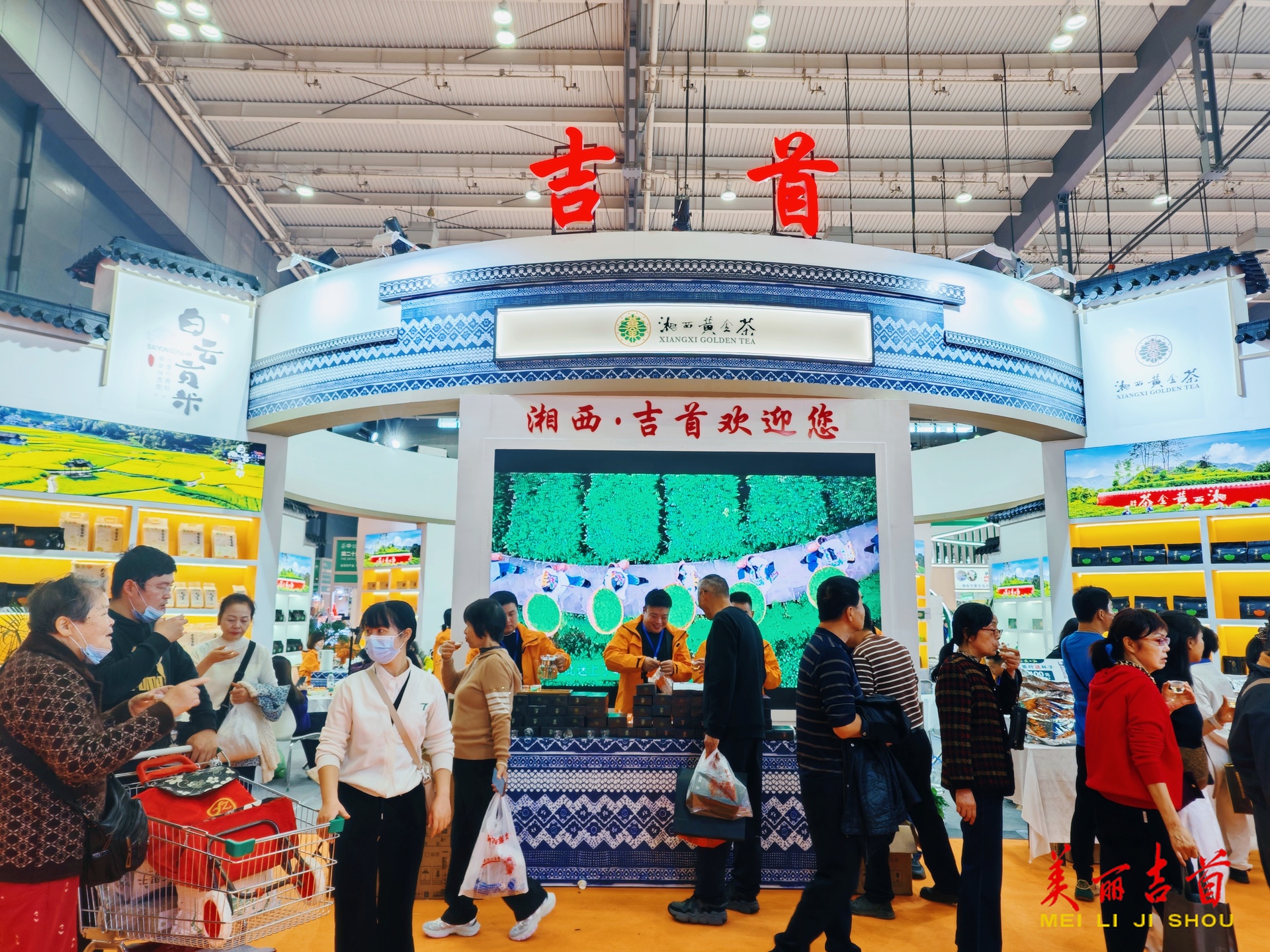 吉首市共有神秘谷、新田、湘惜、边城生物等14家本土企业集体亮相,以“湘西黄金茶”为主打,集中展示湘西贡醋、白云贡米、榜爷腊味等吉首特色农产品的独特魅力。