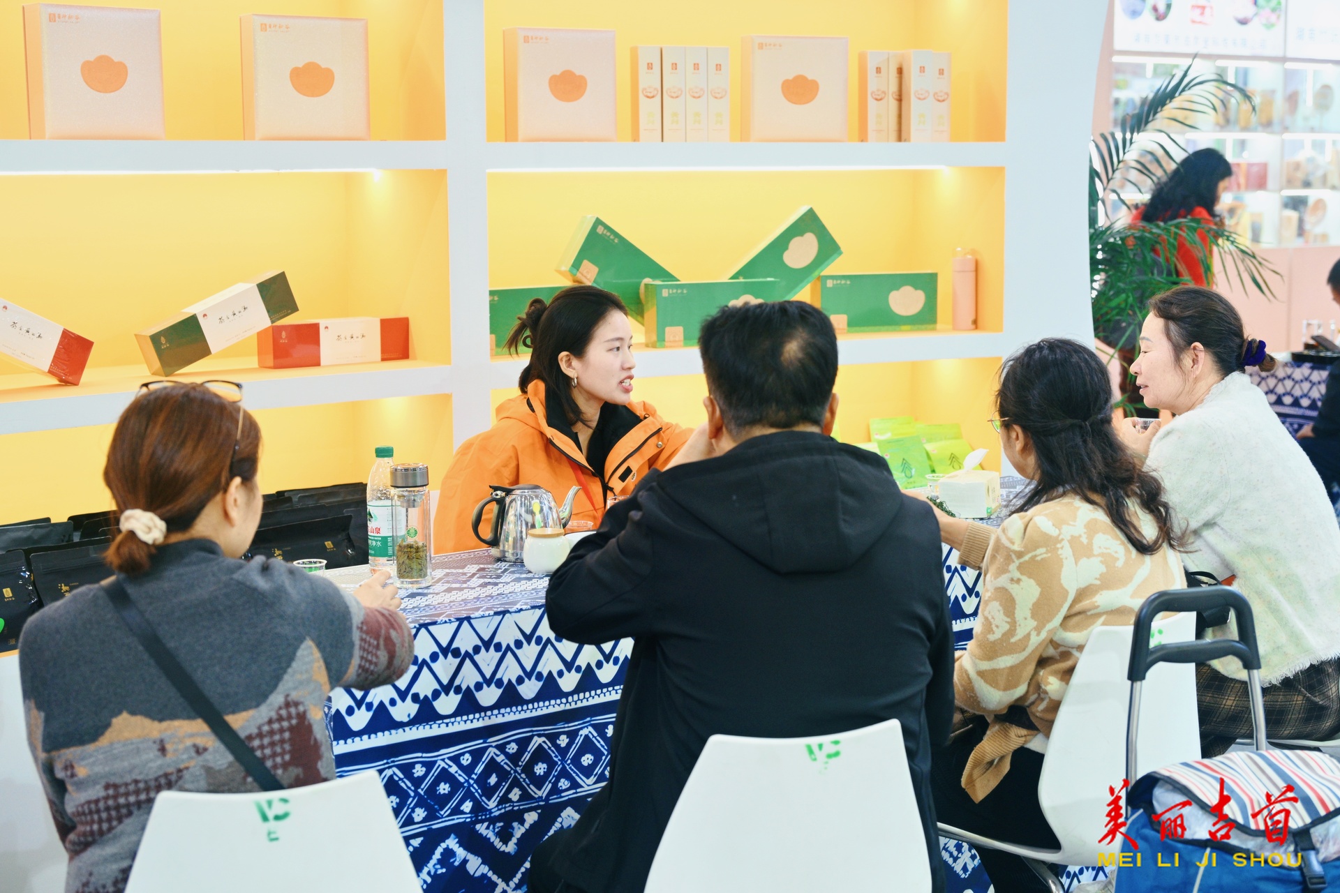 走进吉首展区,一股清新的茶香扑面而来。湘西黄金茶系列产品成为全场焦点,头采、明前、雨前、谷雨四大时节的绿茶与红茶整齐陈列,引得观众驻足品鉴。现场推出的“9.9元茶叶秒杀”和“满100元送精品茶杯”活动,更是吸引了不少消费者排队参与,活动首日销售已突破1000单。