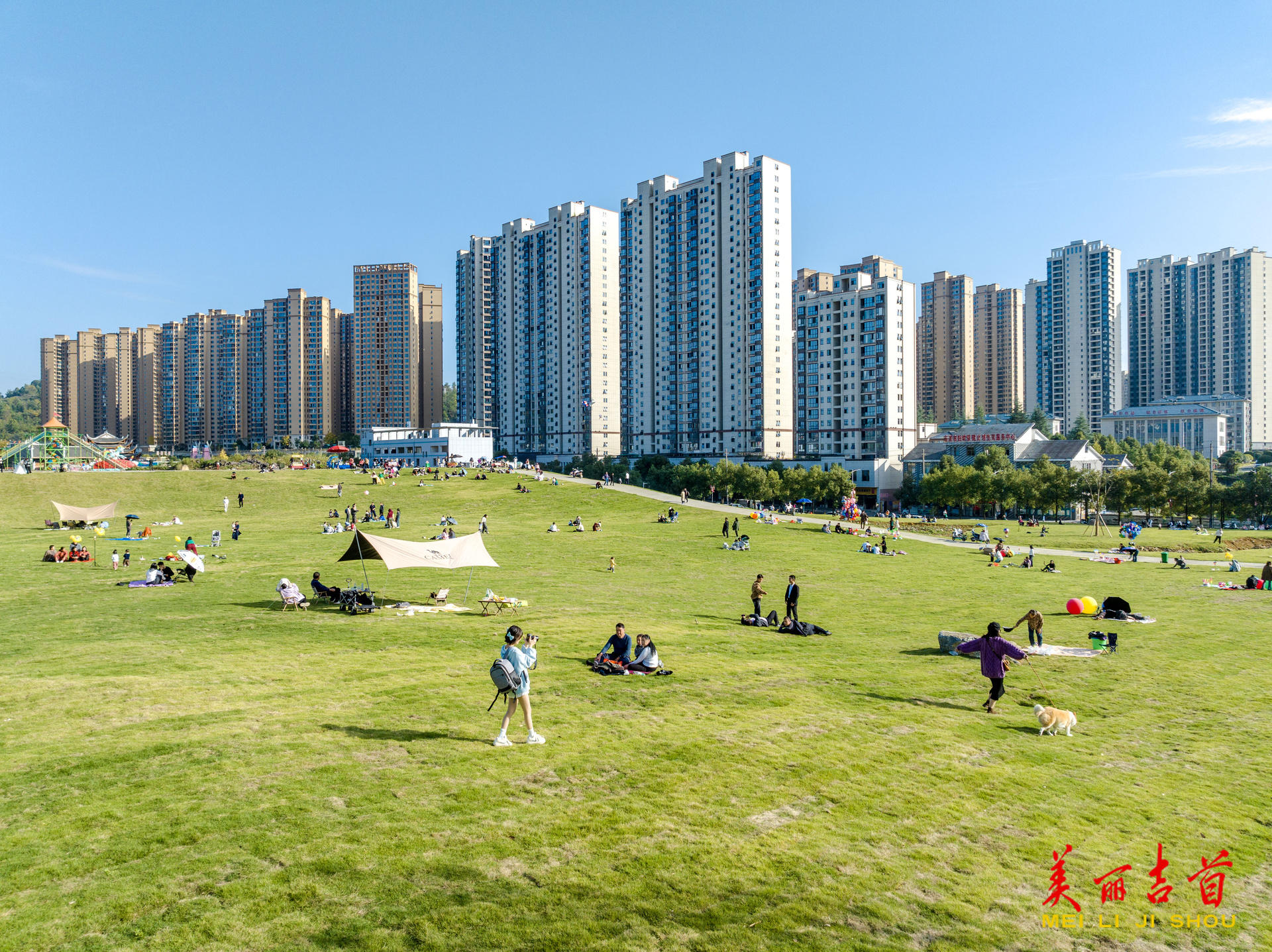 11月12日,吉首市乾州街道兔岩社区,市民在新建的“城市草地”休闲游玩。(彭璟 摄)