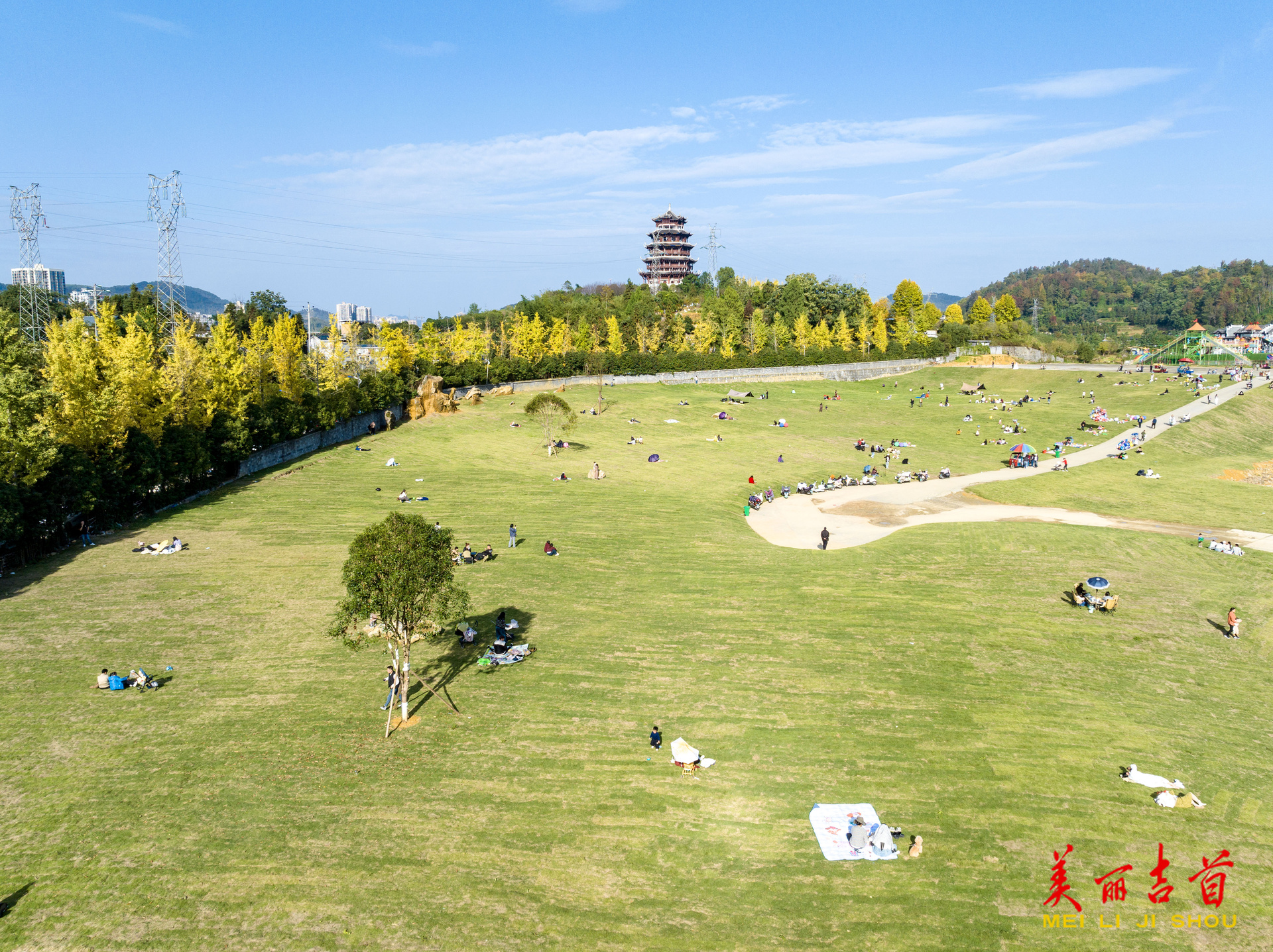 11月12日,吉首市乾州街道红山国有林场,市民在新建的“城市草地”休闲游玩。(彭璟 摄)