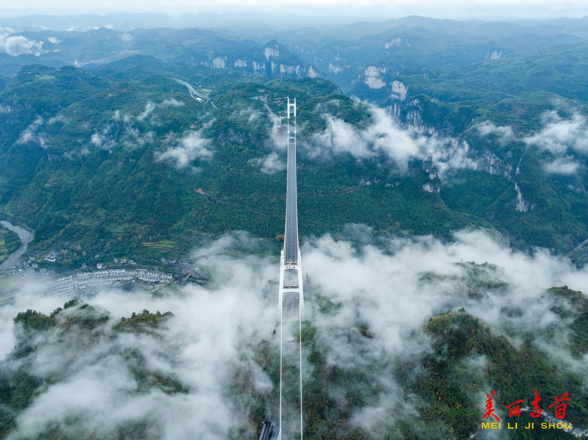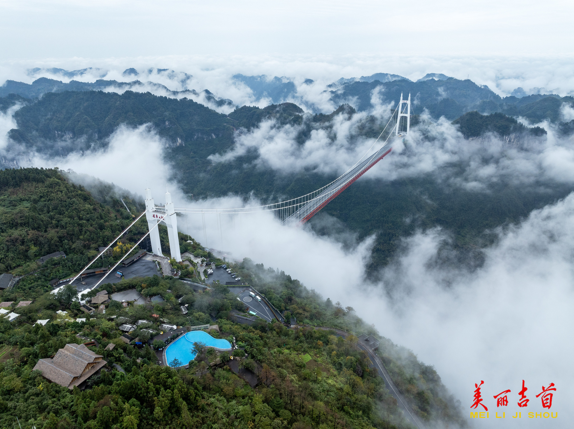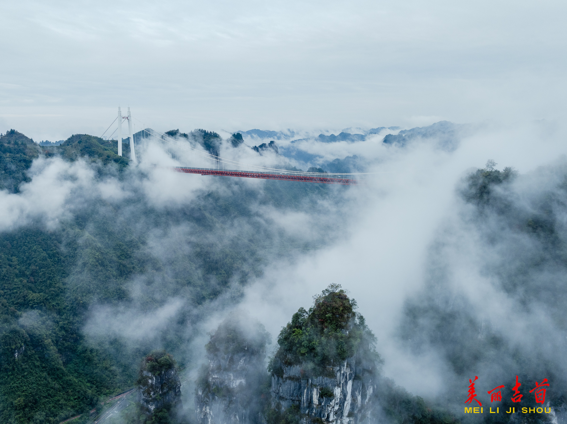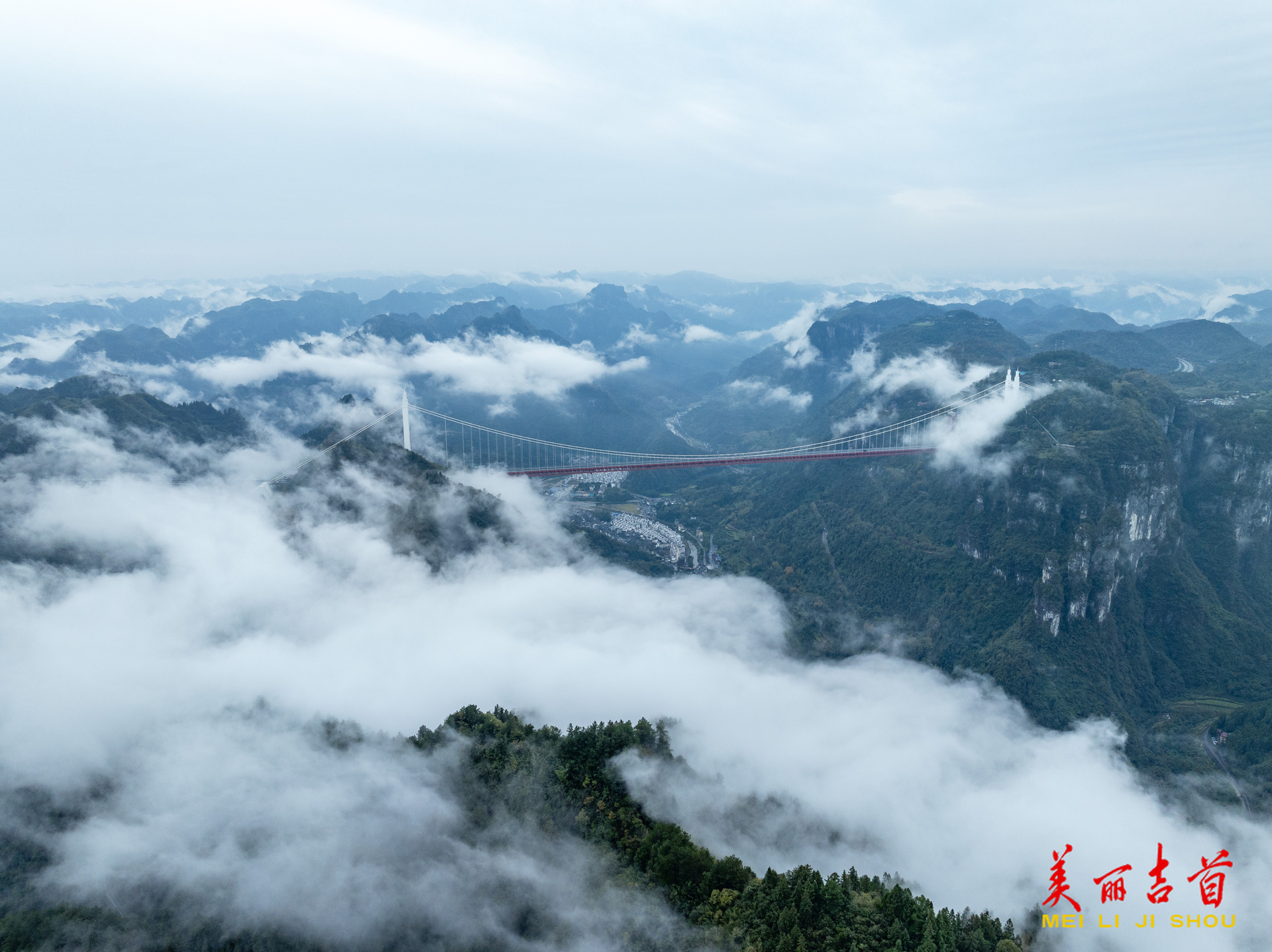 吉首市融媒体中心11月3日讯(全媒体记者 彭璟)11月2日,吉首市矮寨大桥附近雨后云海翻腾,大桥、峡谷、峰峦在云雾中时隐时现,宛如仙境,构成了一幅雄伟壮阔的自然画卷。