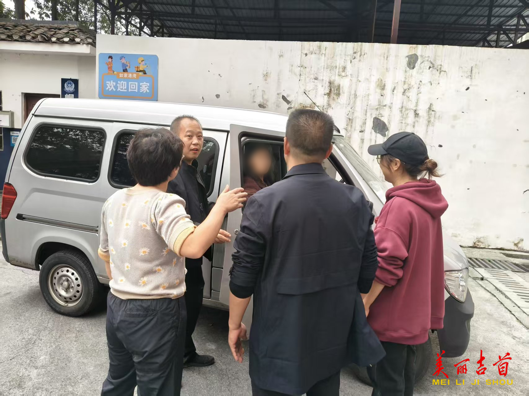 11月5日下午,搜救人员陪同被找到的老人返回家中。