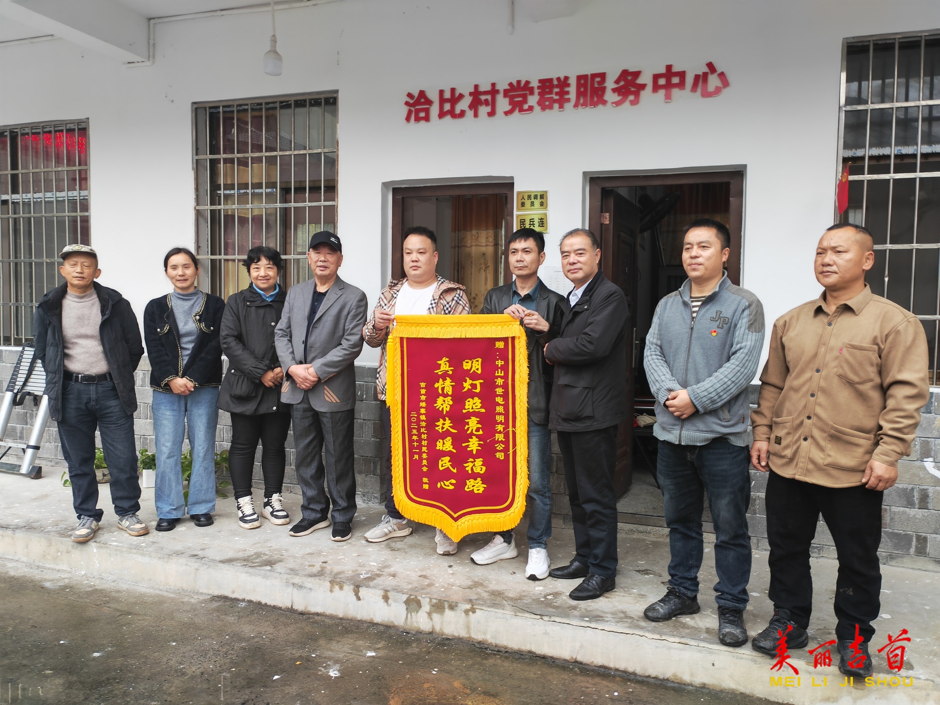 吉首市融媒体中心11月7日讯(全媒体记者 向奎 通讯员 周琼)安装新路灯,照亮新生活。11月7日,吉首市矮寨镇洽比村举行了“明灯照亮幸福路 真情帮扶暖民心”路灯捐赠仪式,新安装的太阳能路灯,不仅改善了村民出行条件,也切实提升了村民安全感、幸福感、获得感。