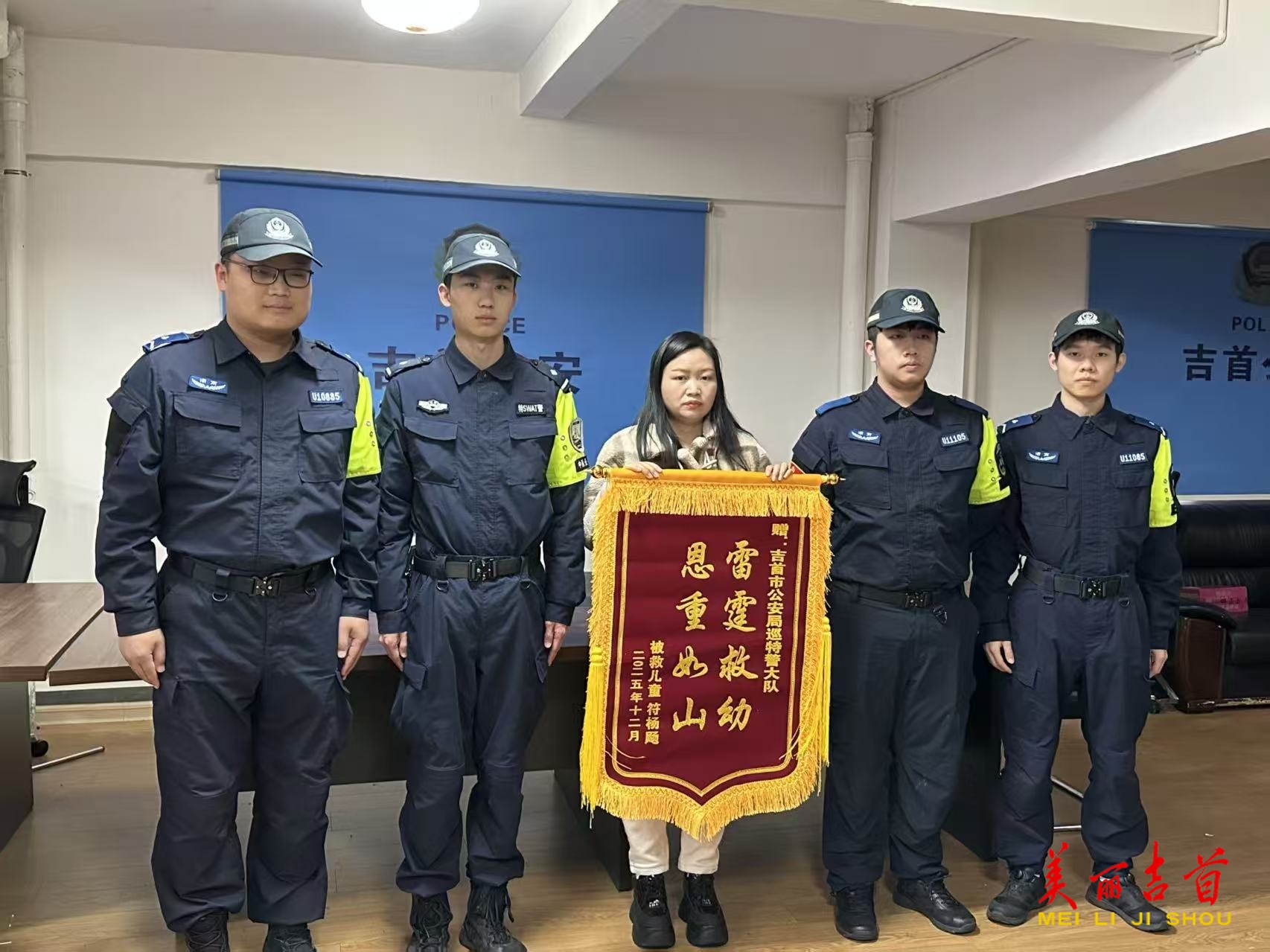 吉首市融媒体中心12月25日讯(通讯员 张子琪)12月24日,市民李先生将一面印着“雷霆救幼,恩重如山”的鲜红锦旗送到吉首市公安局巡特警大队,紧紧握着队员们的手连声道谢。这一幕源于此前一场紧急救援。