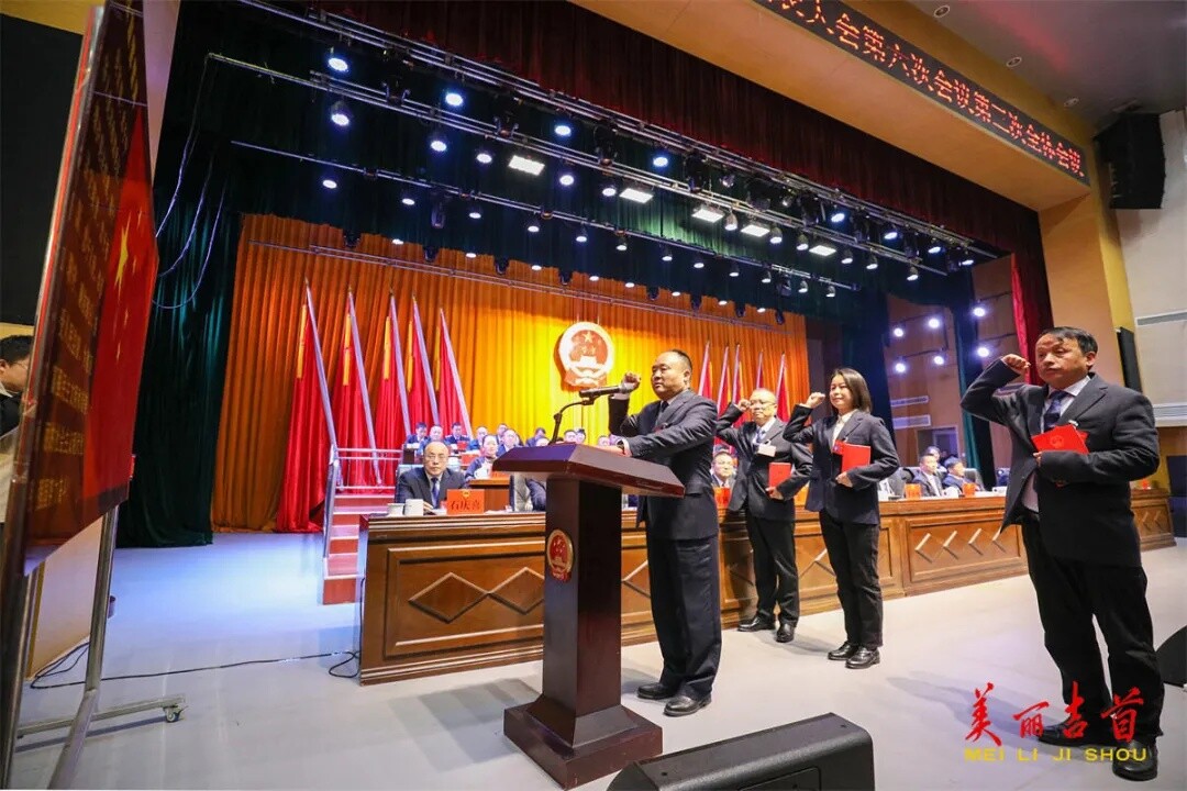 在热烈的掌声中,新当选人员分别进行宪法宣誓。