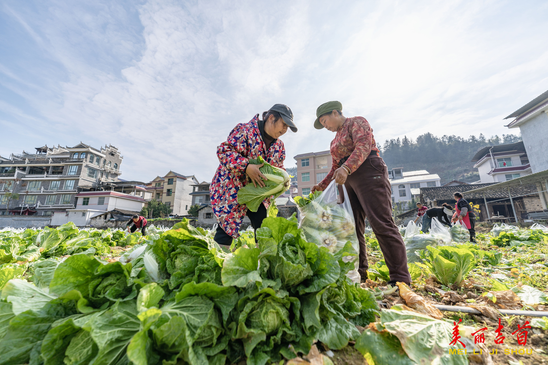吉首市融媒体中心12月30日讯(全媒体记者彭璟)12月27日,吉首市石家冲街道曙光村蔬菜基地,村民正忙着采收白菜,供应市场。近年来,该村通过“村集体+企业+农户”模式发展订单农业,建设规模化、标准化、产业化蔬菜示范基地,实现村集体经济和农户双增收,助力乡村振兴。