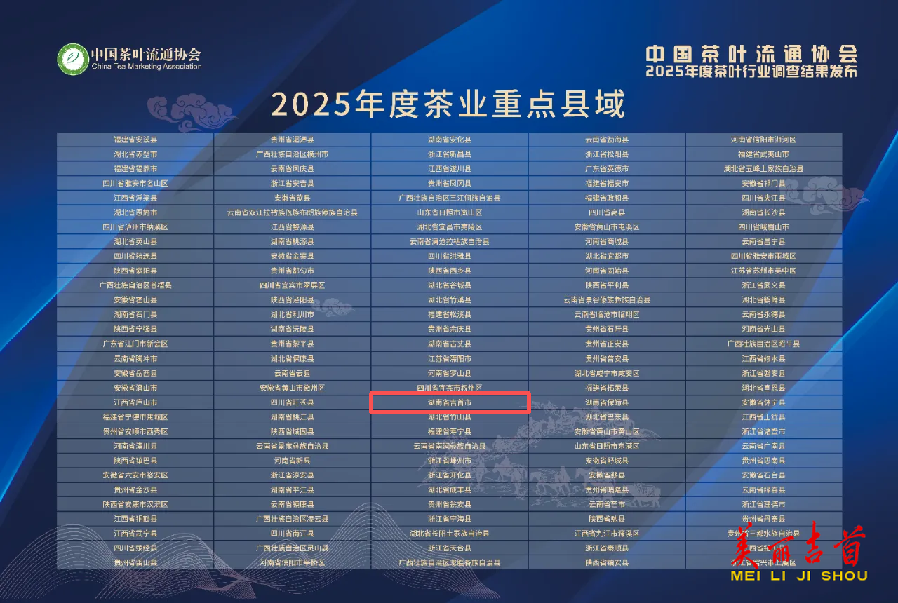吉首市融媒体中心12月8日讯(通讯员 龙雪娇)11月27日,第二十一届中国茶业经济年会开幕式在浙江新昌举办。期间,中国茶叶流通协会发布了“2025年度茶业重点县域”,吉首市连续7年获评该项荣誉。同期,由新华社品牌工作办公室、中国经济信息社、中国茶叶流通协会主办的2025中国茶品牌建设论坛在浙江新昌举办。论坛发布了“2025中国茶品牌(区域公用品牌、企业品牌)TOP50”系列调查成果,吉首市茶叶区域公用品牌“湘西黄金茶”实力登榜。