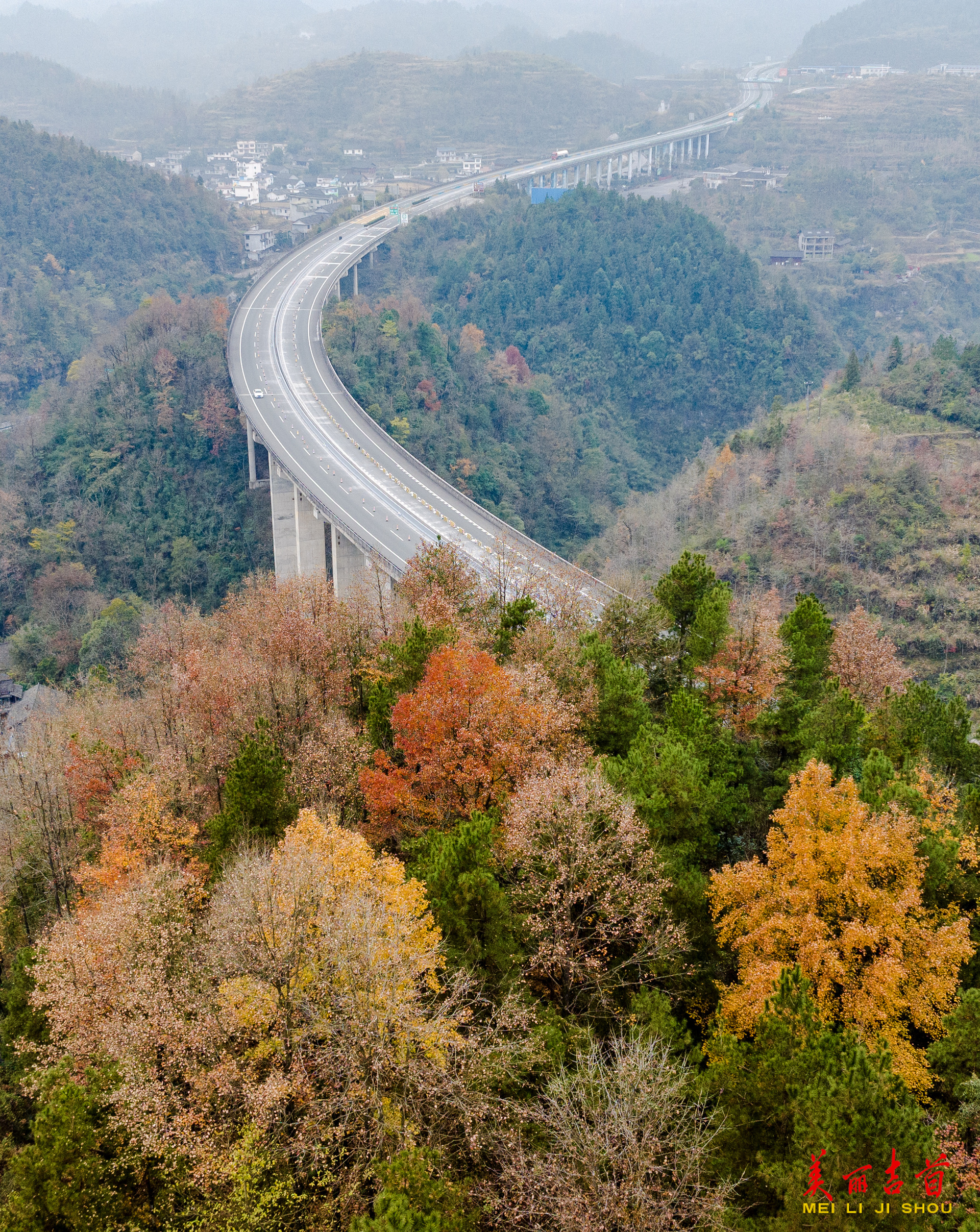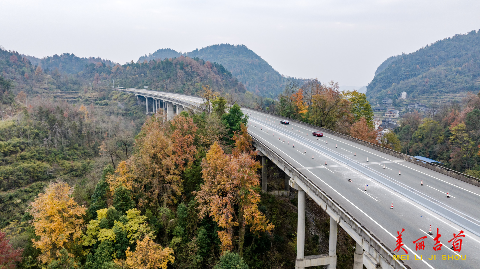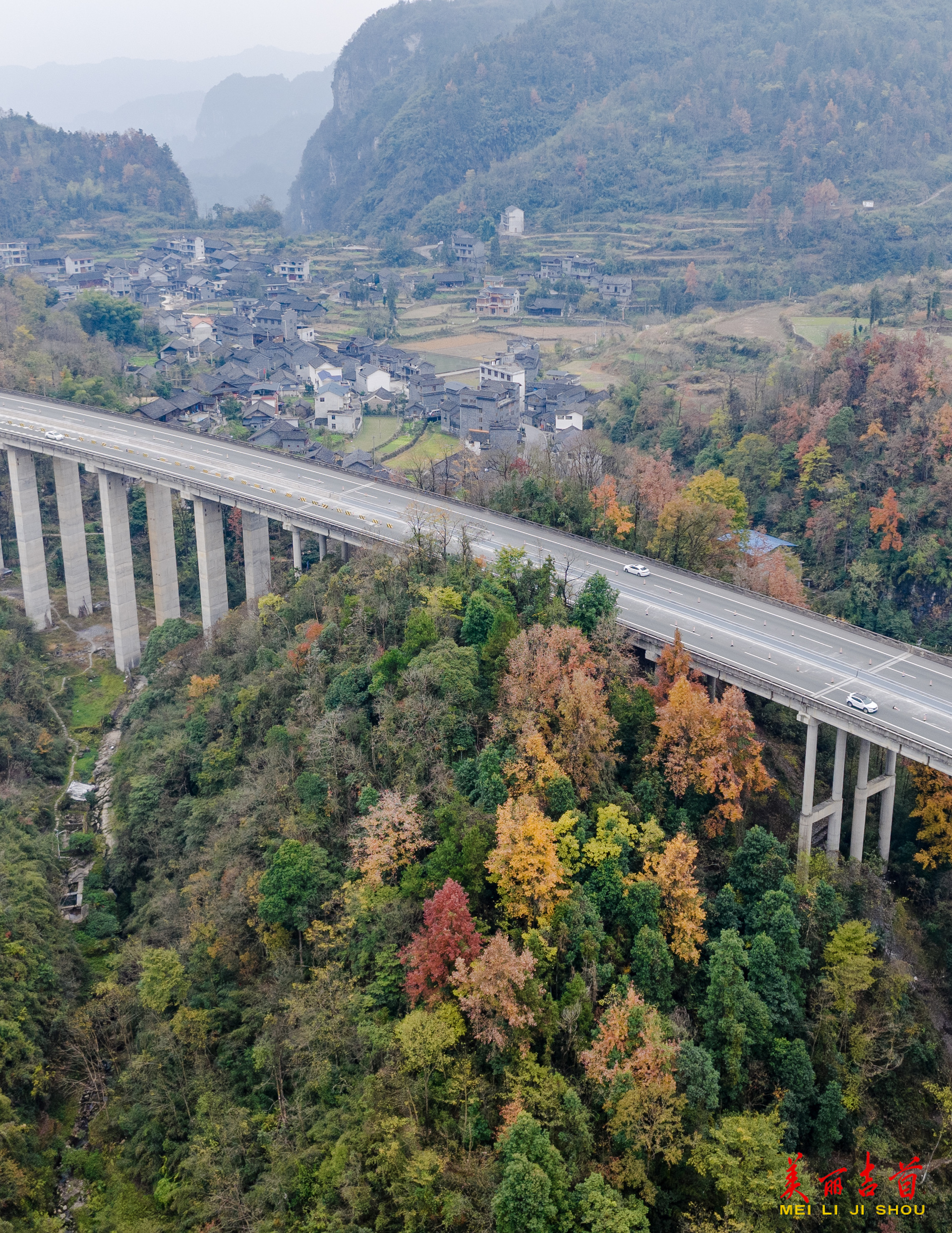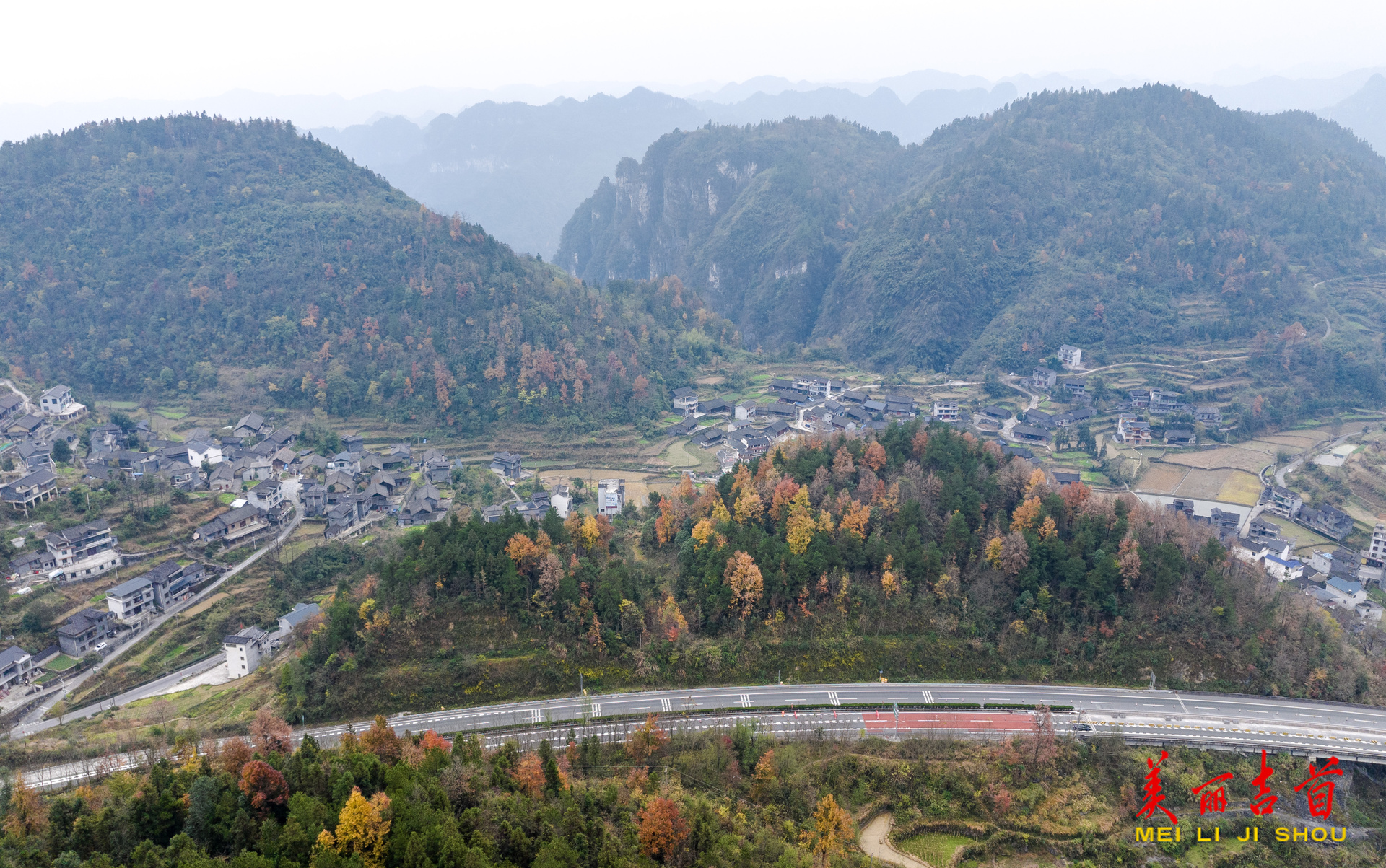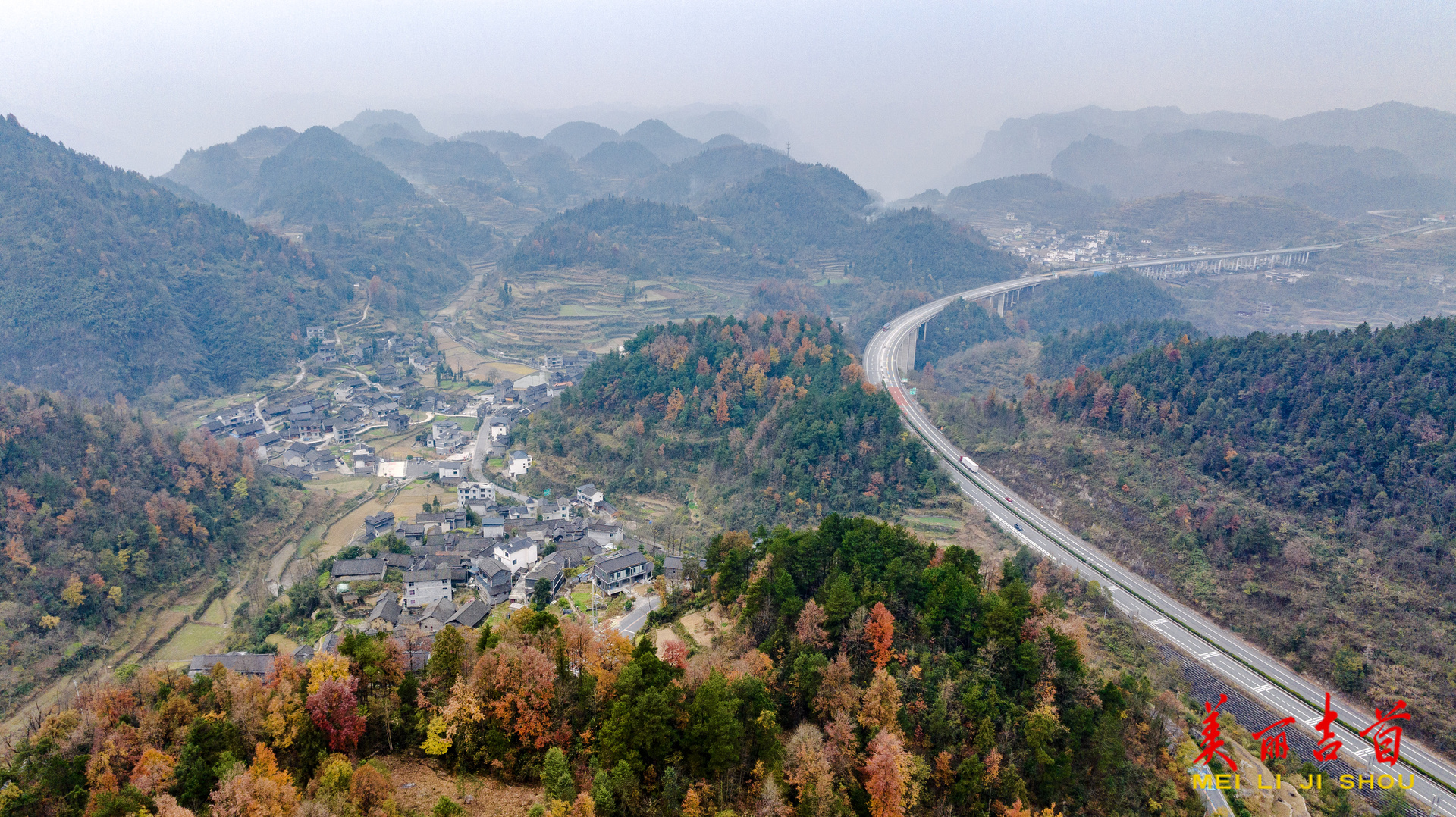 吉首市融媒体中心12月8日讯(全媒体记者 彭璟)12月2日,吉首市矮寨镇幸福村周边,层林尽染,色彩斑斓,包(头)茂(名)高速公路穿行其间,与古朴的苗寨、缤纷的山林相映成趣,共同构成了一幅美丽多彩的乡村冬日画卷。