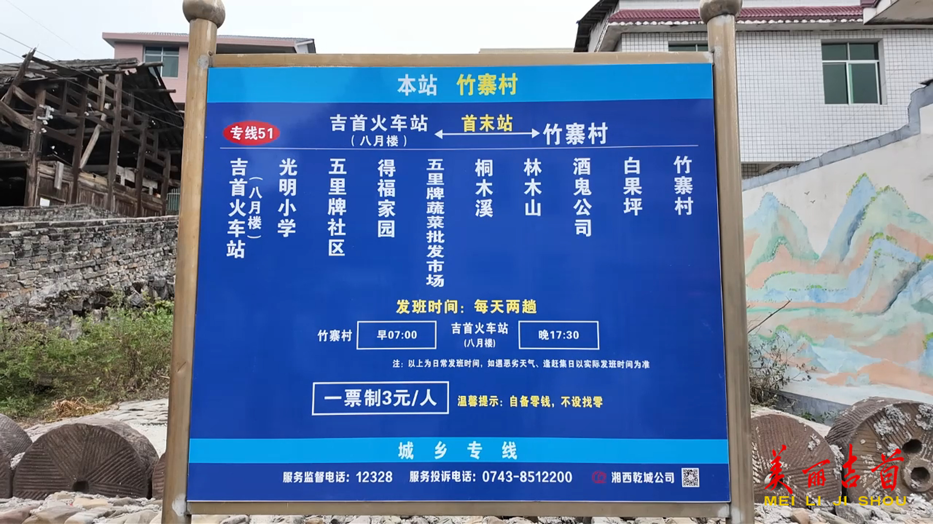 据了解,专线51路公交全程一票制3元/人,往返吉首火车站(八月楼)——竹寨村,沿途经过白果坪、酒鬼公司、林木山、桐木溪、五里牌蔬菜批发市场、德福家园、五里牌社区、光明小学等站点,每天发班两趟,竹寨村早7:00发车,吉首火车站晚17:30发车。